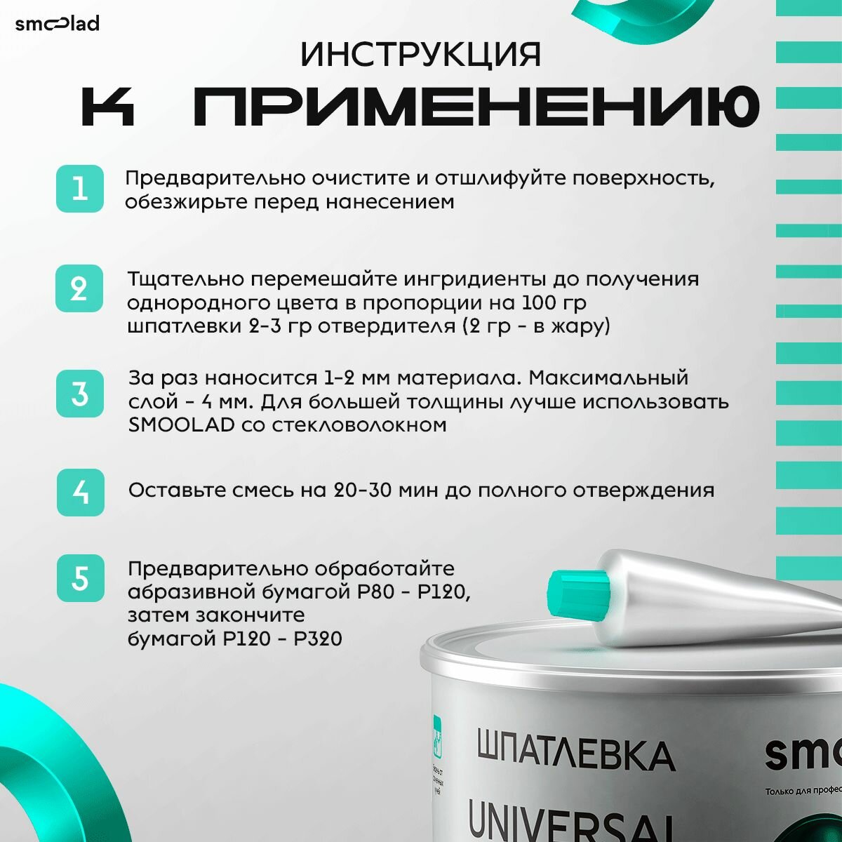 Шпатлевка автомобильная полиэфирная SMOOLAD UNIVERSAL 0,5 кг + отвердитель / Универсальная шпаклевка для машины двухкомпонентная