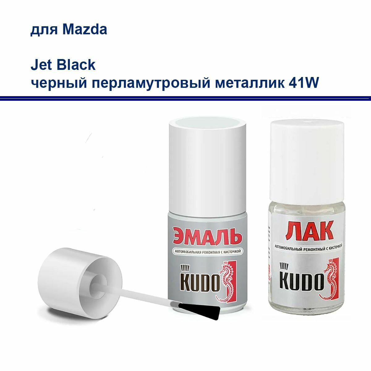 Купить Набор для подкраски сколов и царапин для Mazda краска и лак Kudo с кистью Jet Black черный перламутровый металлик 41W
