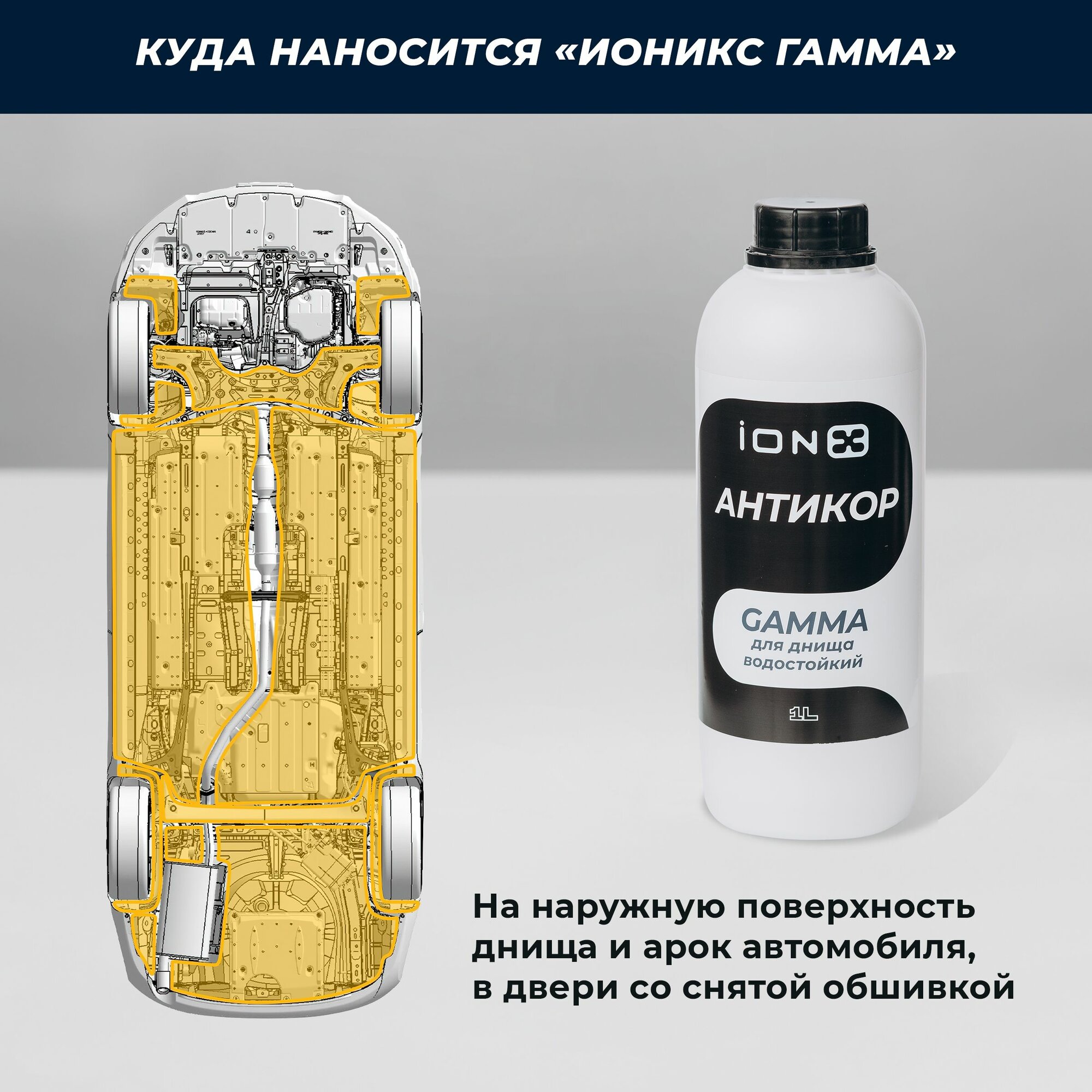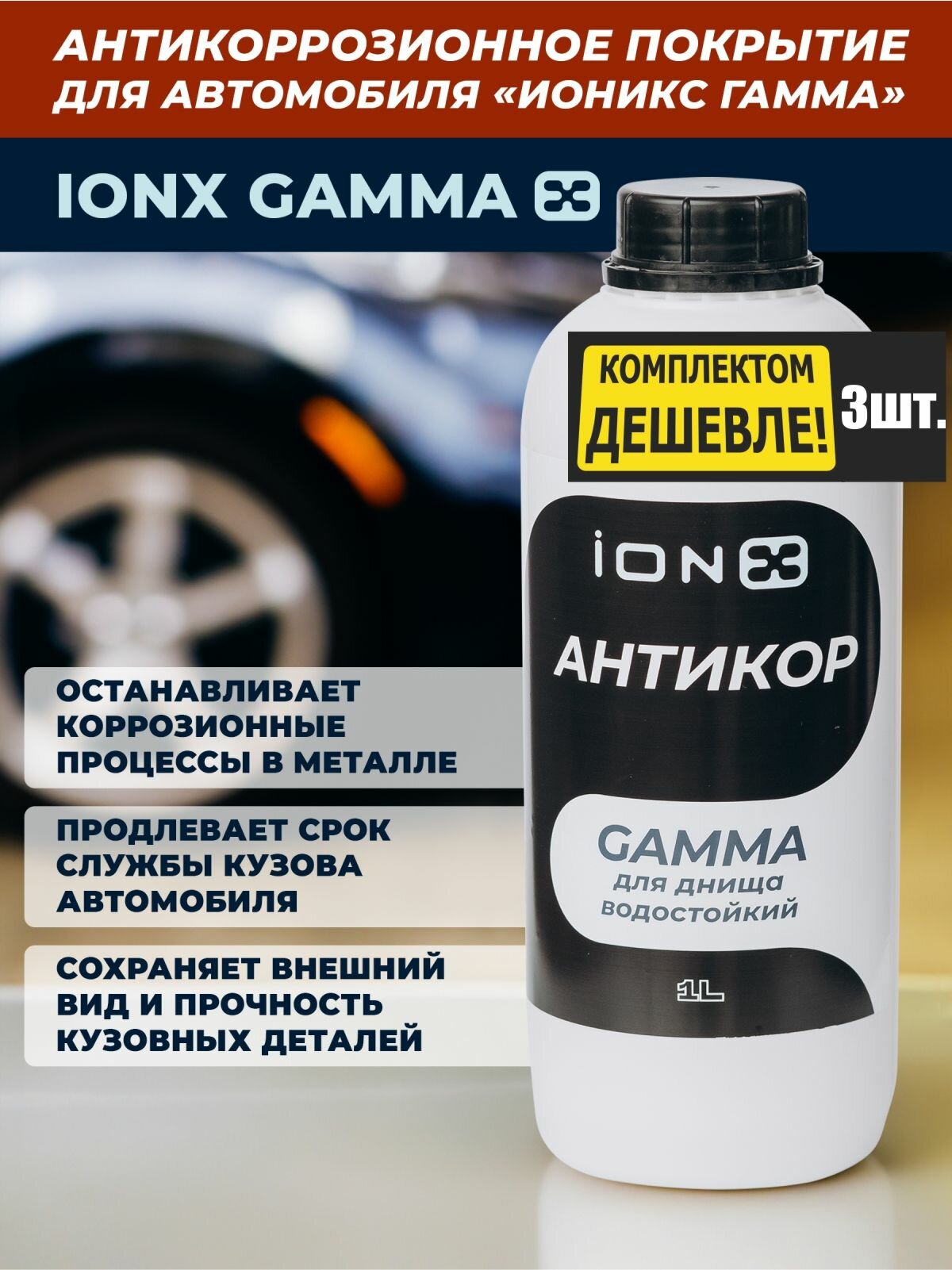 Купить Комплект 3 шт: Антикор от ржавчины ионикс Гамма для днища, стойкий к вымыванию, автомобильное антикоррозионное покрытие iONX Gamma, 1л Аналог раст стоп