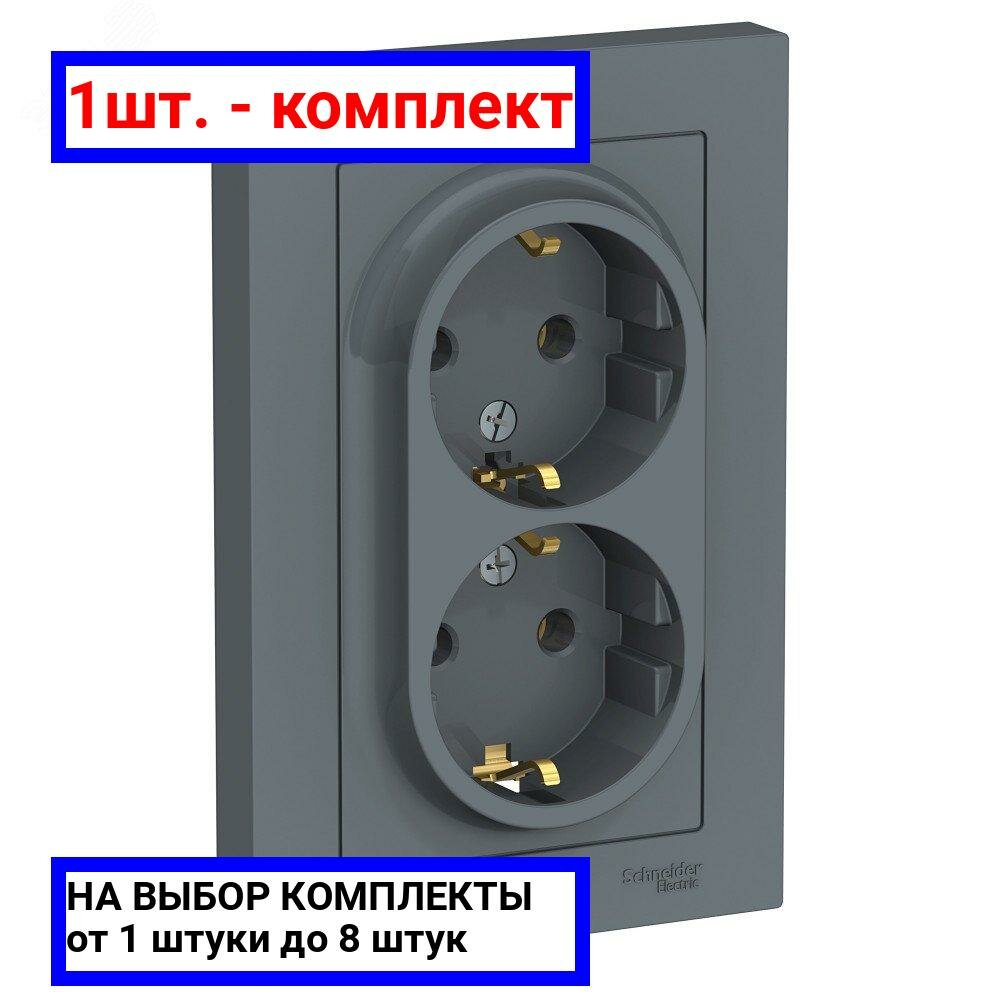 Розетка двойная встраиваемая Schneider Electric Atlasdesign, с/з, 16 А, IP20, грифель