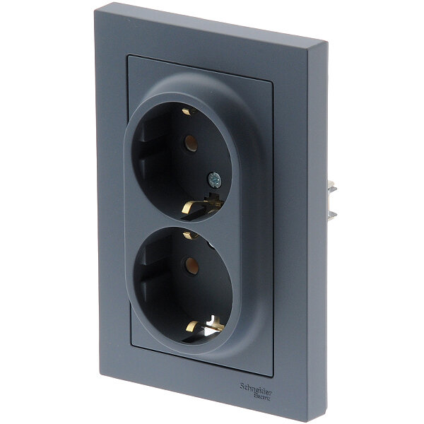 Розетка двойная с заземлением Schneider Electric AtlasDesign Грифель