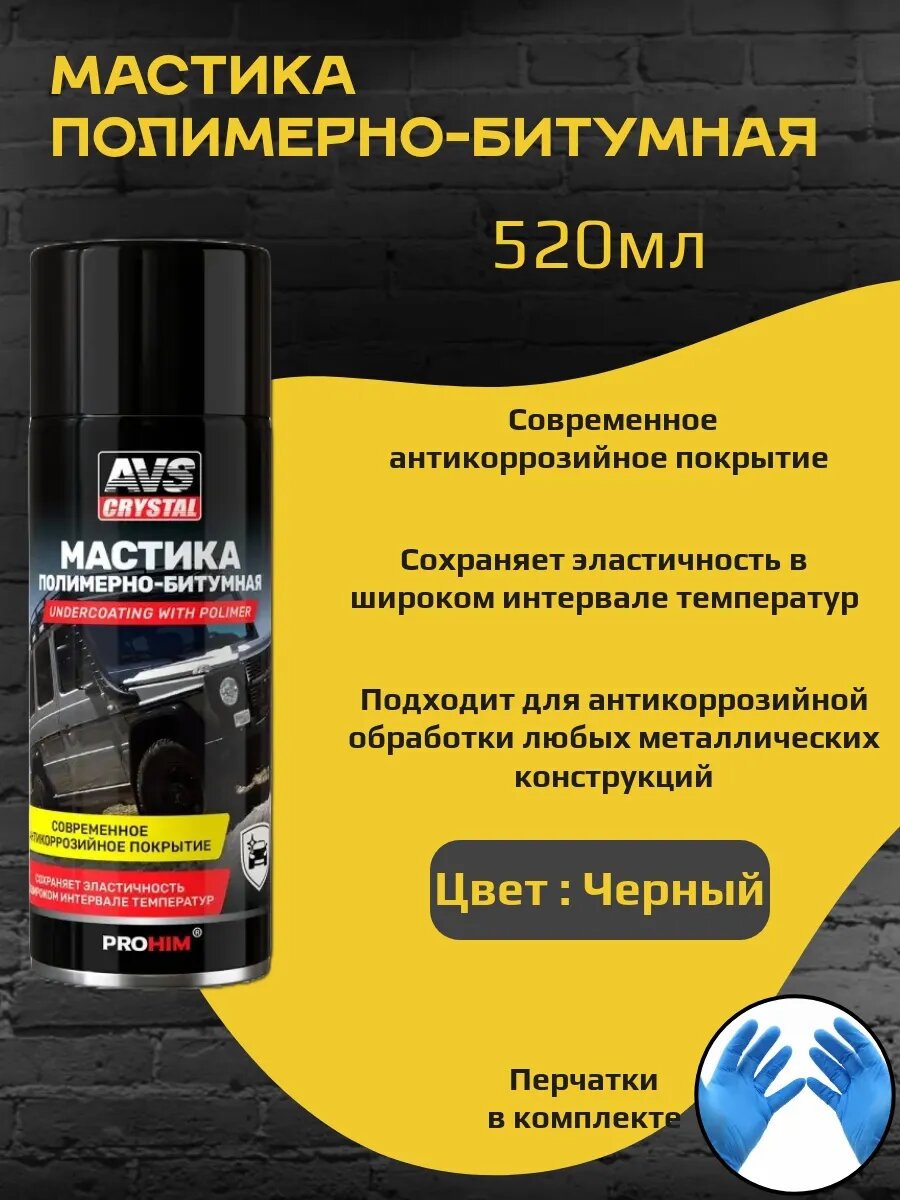 Мастика полимерно-битумная (аэрозоль) 1000 мл. AVS AVK-160 черная