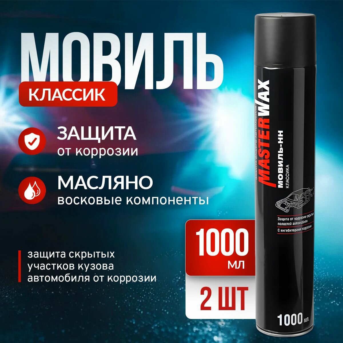 Купить Мовиль Классик MasterWax аэрозоль 1000 мл - 2 шт.