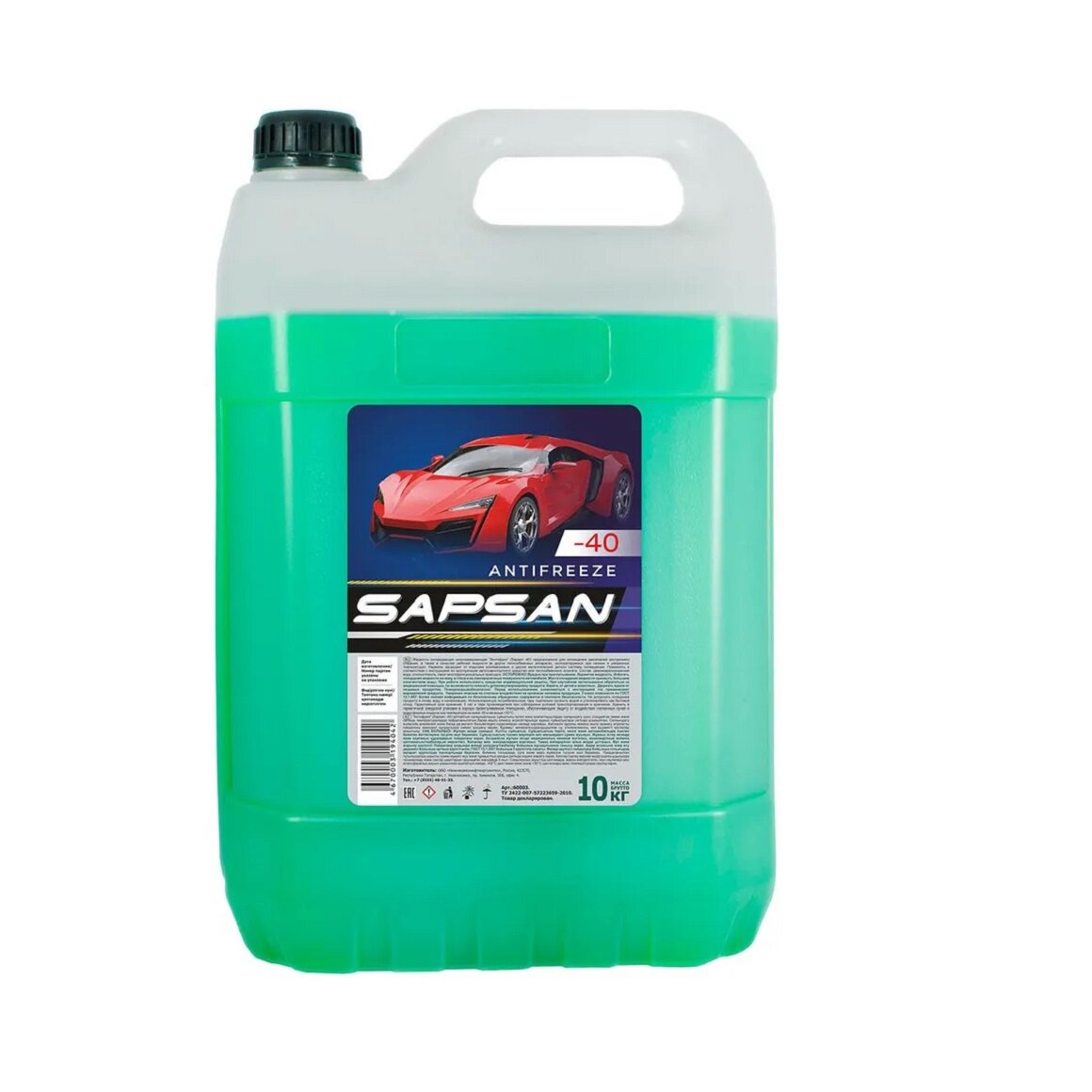 Антифриз готовый SAPSAN Antifreeze Green -40, цвет зеленый, 10 кг канистра интересное: