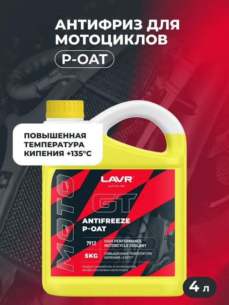 Антифриз LAVR для мотоцикла GT P-OAT (4л) LAVR MOTO лобридный SAE J1034 ASTM D3306 интересное: