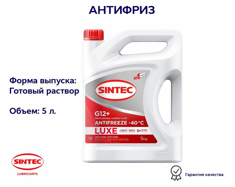 Антифриз готовый красный Luxe G12+ -40 5 кг SINTEC 614503 интересное:
