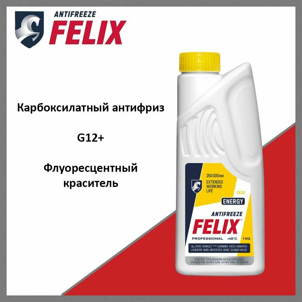 Антифриз готовый FELIX карбоксилатный ENERGY-45 желтый G12 1 кг 430206026 интересное: