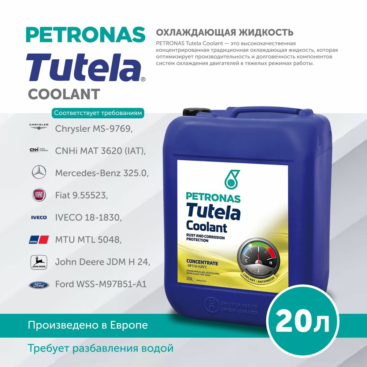 Купить Антифриз (концентрат)желтый PETRONAS TUTELA COOLANT 20л (IAT) MTL 5048 John Deere JDM H 24 Ford WSS-M97B51-A1 77333R41EU