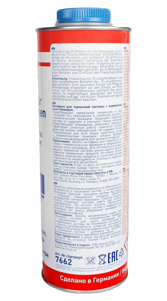 Антифриз для тормозной системы с пневматическим приводом Frostschutz fur Druckluftbremsen 1л Liqui Moly 1828 интересное: