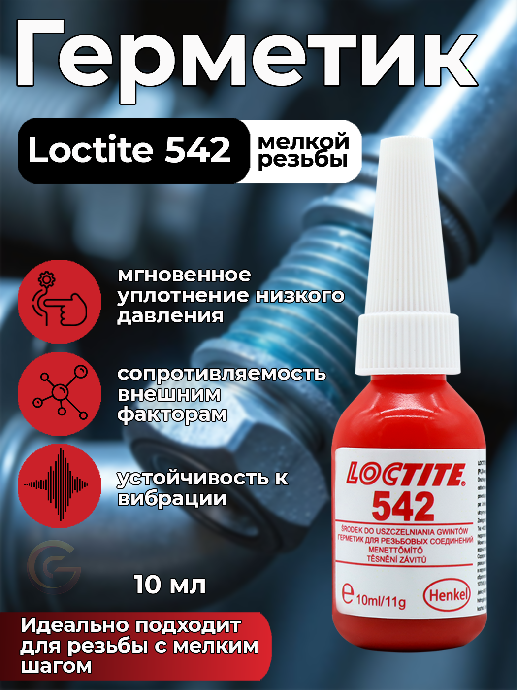 Уплотнитель текучий Loctite для фиксации резьбы с мелким шагом 542, 10 мл интересное: