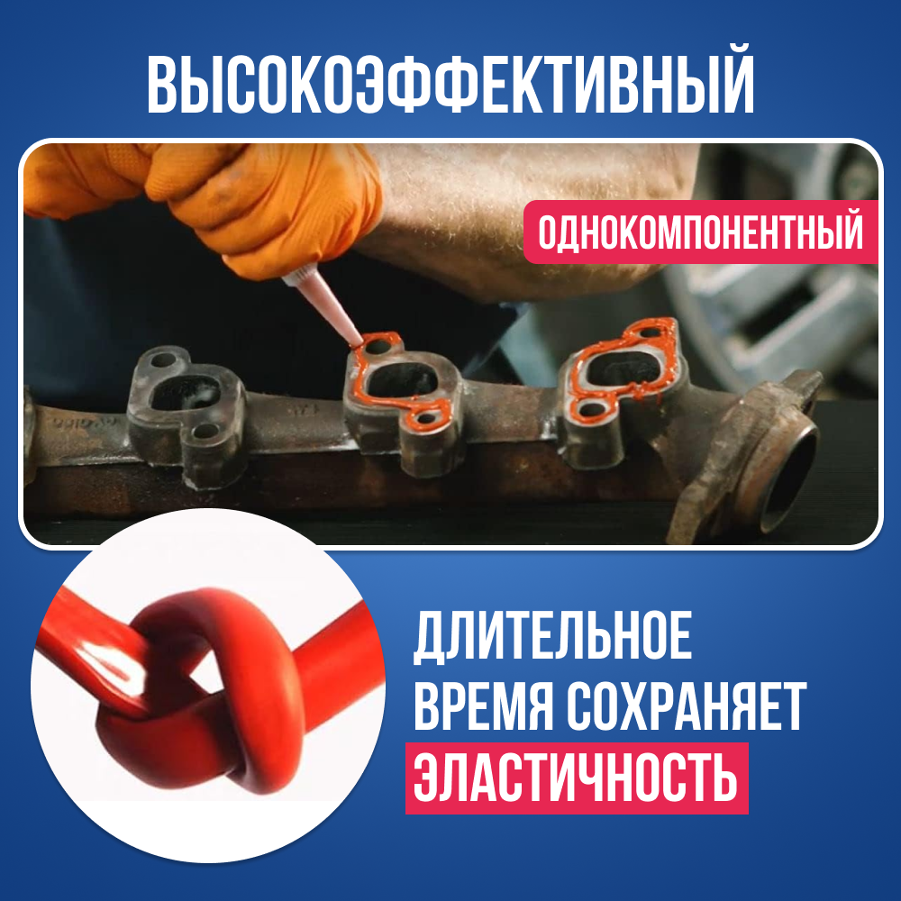 Герметик автомобильный Dirko, термостойкий, силиконовый, до 315°C, 70мл, красный, однокомпонентный интересное: