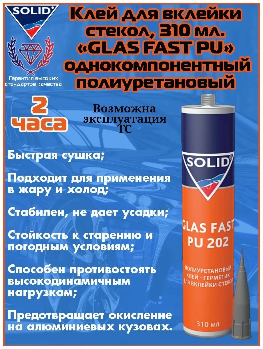 SOLID GLAS FAST PU 202 однокомпонентный полиуретановый клей для вклейки стёкол 310ml 2-ч. интересное: