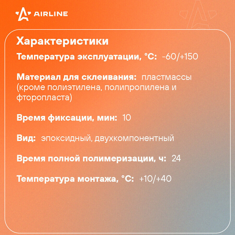 Клей (холодная сварка) для пластика, кислотостойкий, 55 гр. AG-ECW-02 AIRLINE интересное: