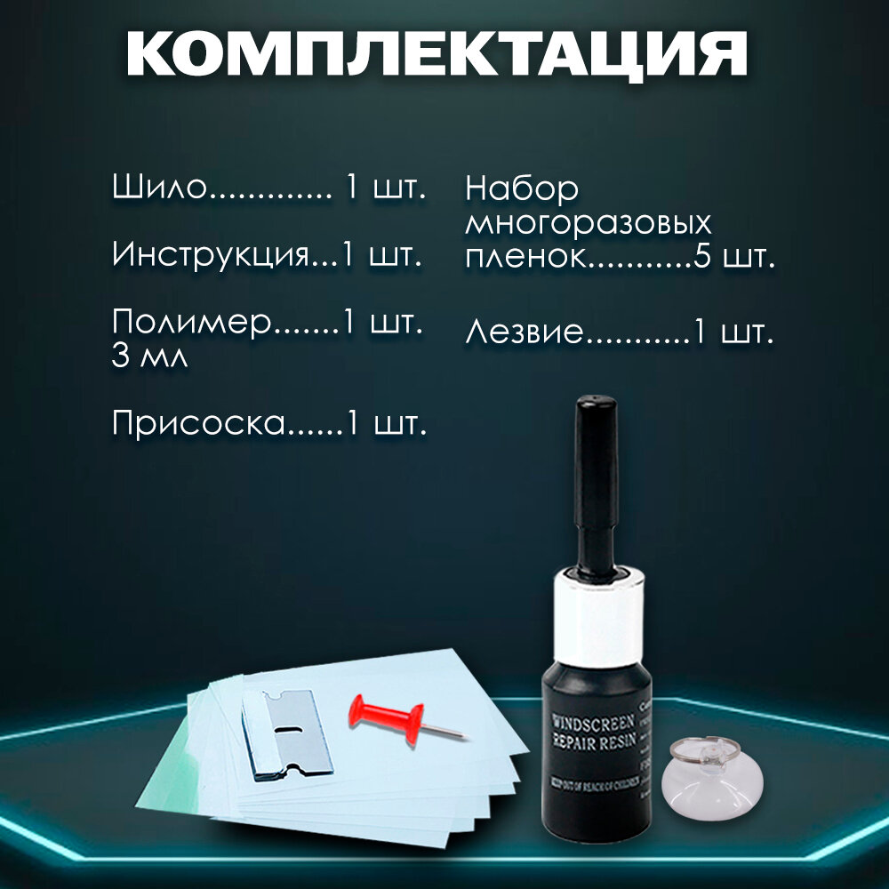 Ремкомплект для сколов и трещин лобового стекла.
