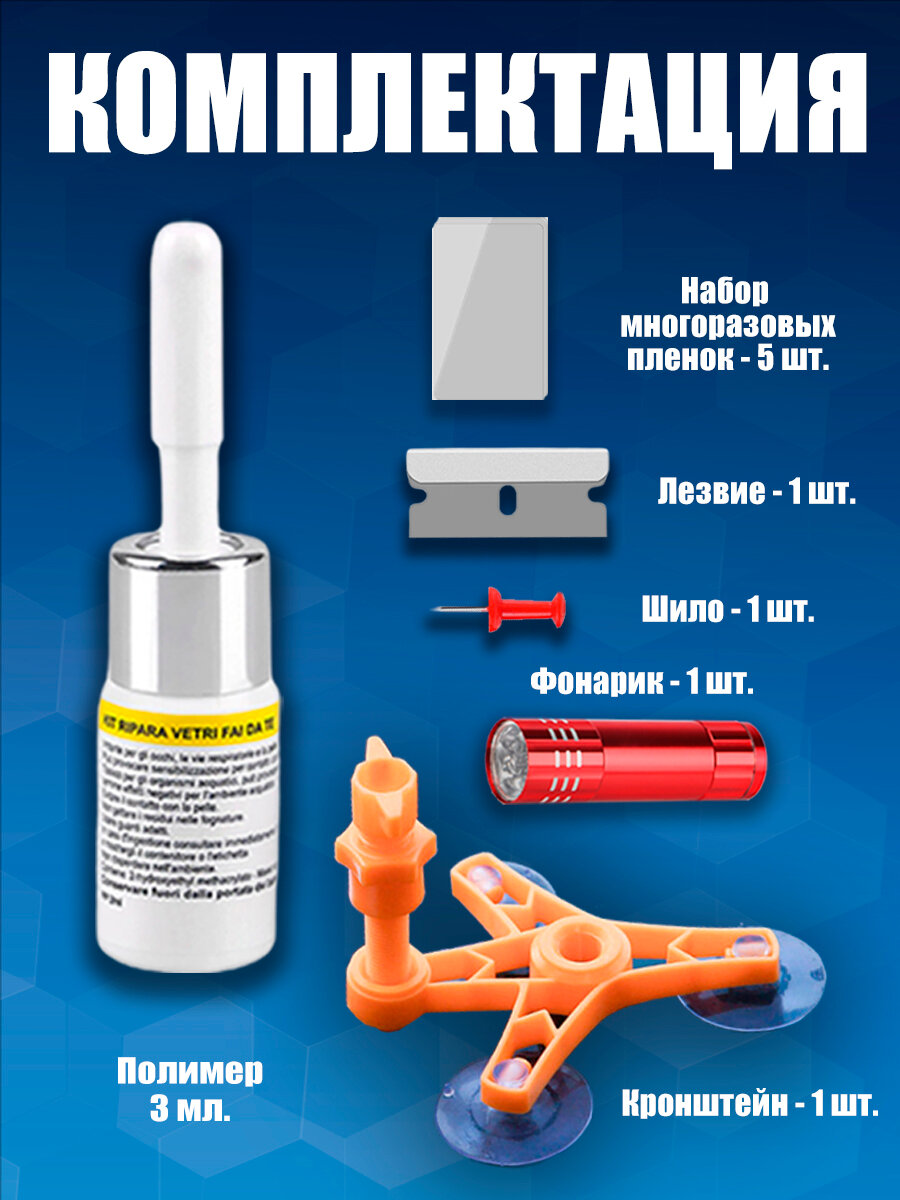 Купить Набор автомобильный ремкомплект для ремонта сколов и трещин лобового стекла
