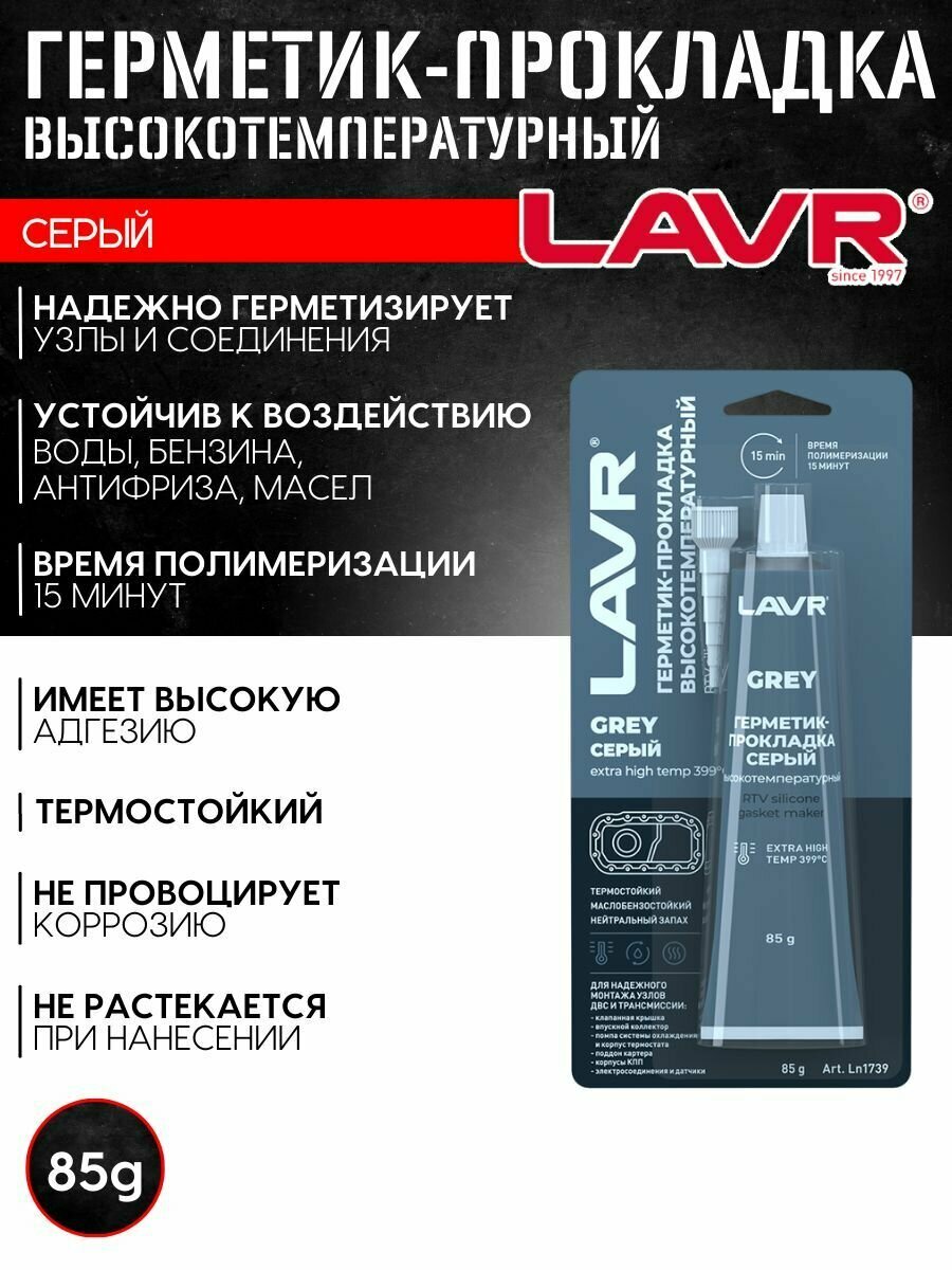 LAVR MOTO Герметик-прокладка серый высокотемпературный Grey, 85 г интересное: