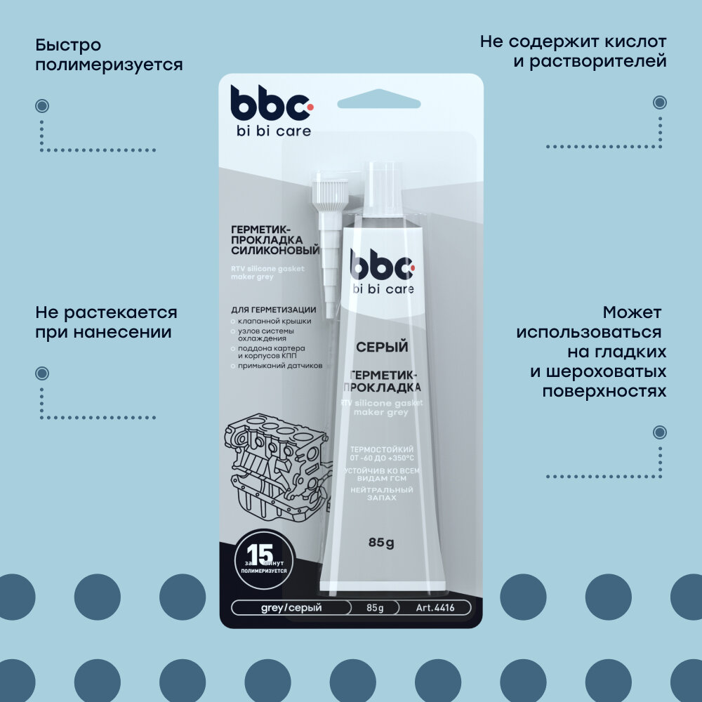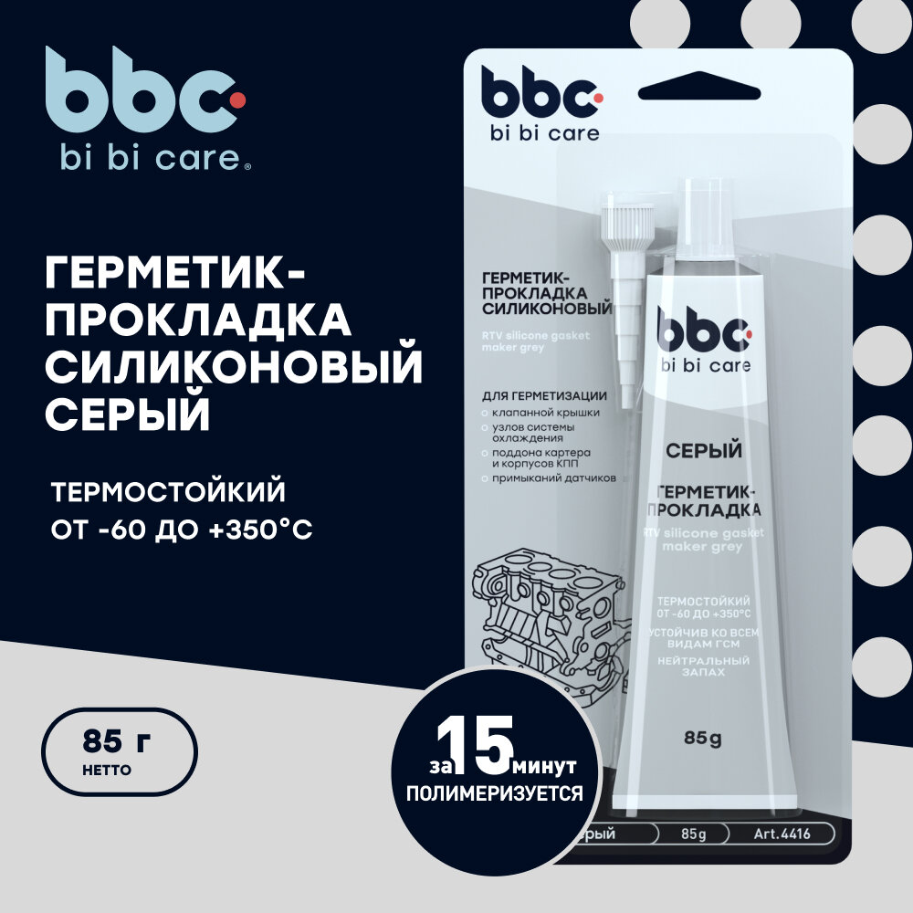 Герметик-прокладка силиконовый серый bi bi care, 85 г / 4416 интересное: