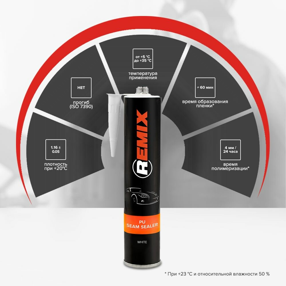 Герметик, Полиуретановый шовный герметик для авто REMIX PU SEAM SEALER 310 мл белый / клей-герметик для кузова интересное: