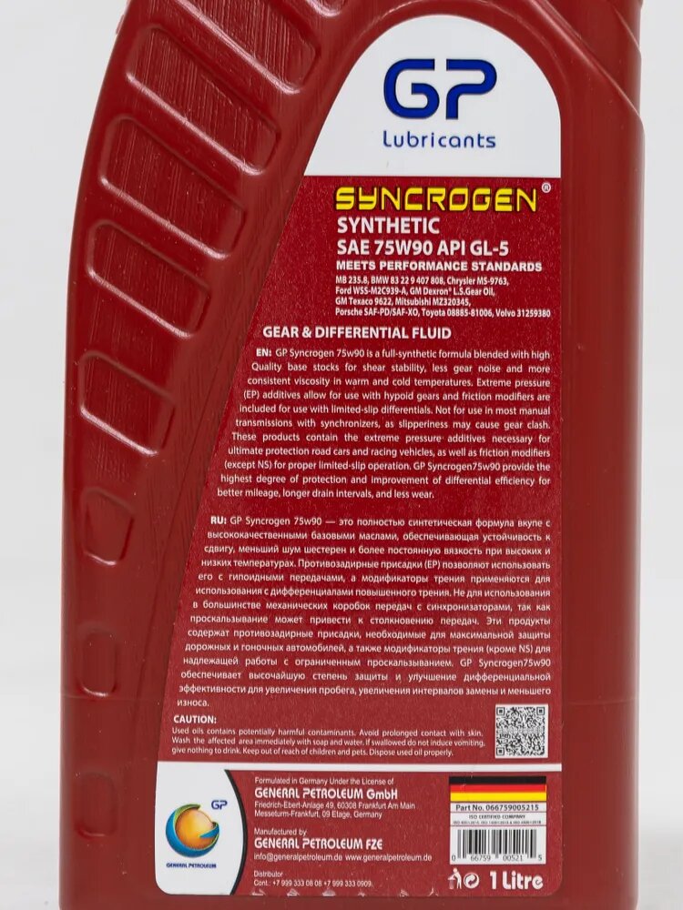 General Petroleum SYNCROGEN MTF 75W90 GL-5 Масло трансмиссионное, 1 л интересное: