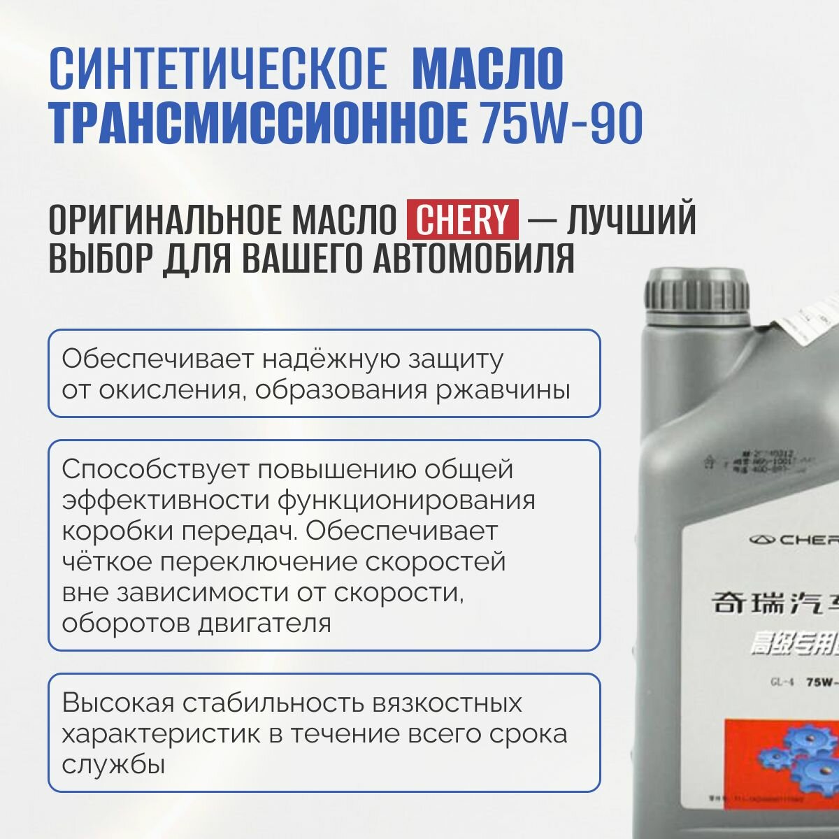 Масло трансмиссионное 75W-90 GL-4 Chery 2л МКПП ; T111KD400401175W2 интересное: