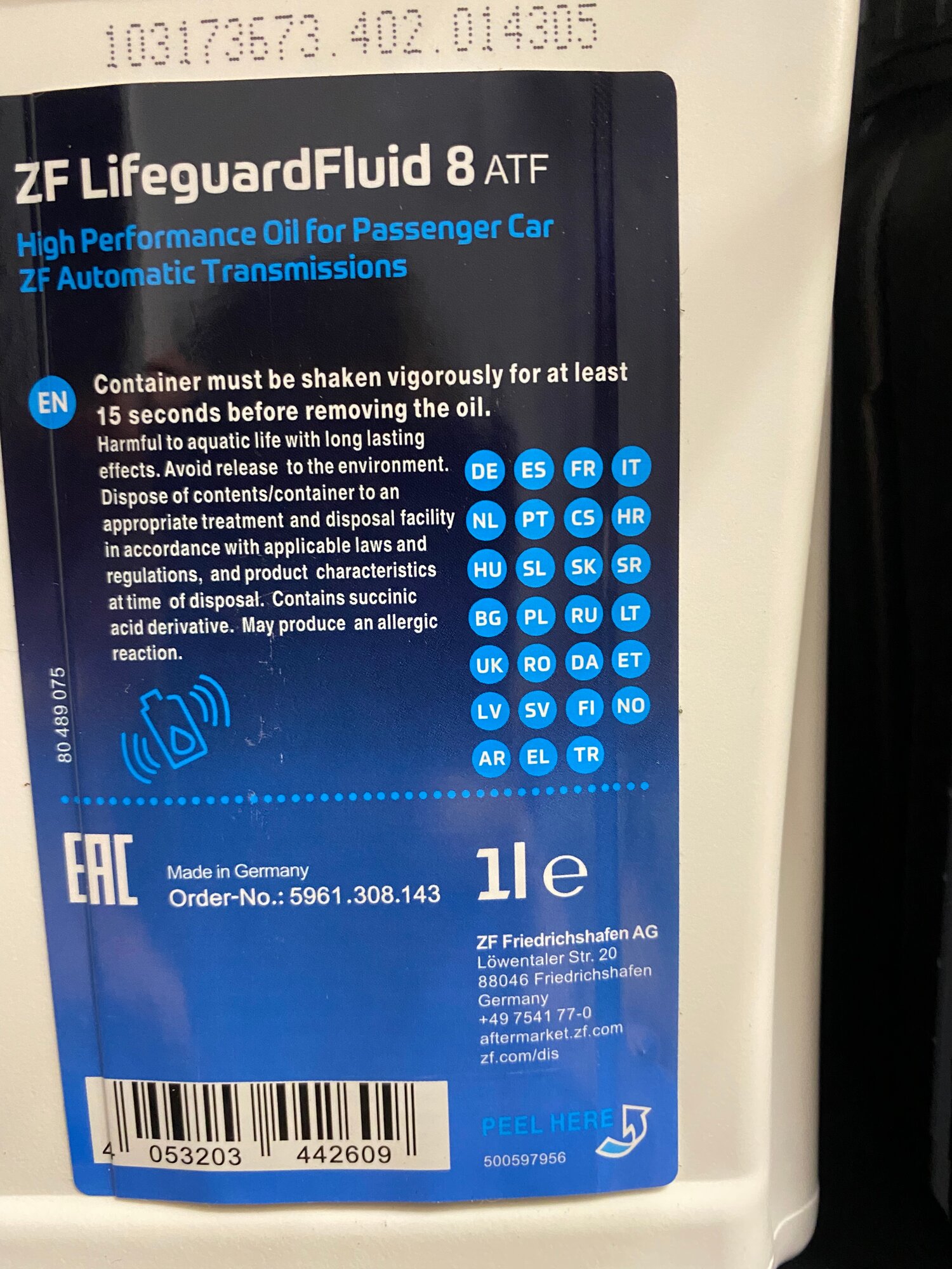 Масло трансмиссионное ZF 8HP LIFEGUARD FLUID 8HP ATF 1л 5961308143 ; S671.090.312 интересное: