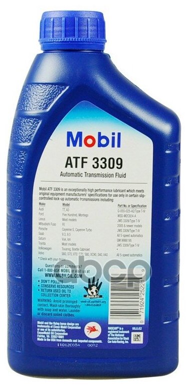 Трансмиссионное масло Mobil ATF 3309 синтетическое 0.946 л (Франция) интересное: