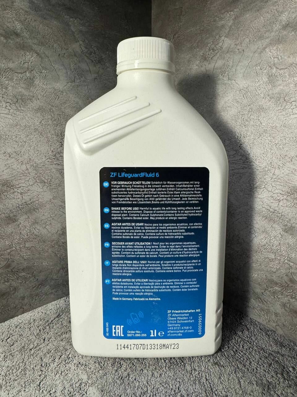 Масло Трансмиссионное ZF ATF Lifeguard Fluid 6 арт . S671.090.255 ZF 1 литр (аналог для VAG G 055 005, BMW 8322 0142516, Hyundai/KIA 040000C90SG) Жёлтое интересное: