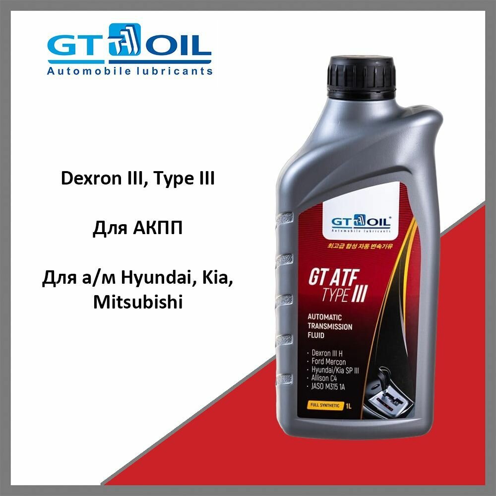Масло трансмиссионное синтетическое GT OIL GT ATF TYPE III 8809059407776 1 л интересное:
