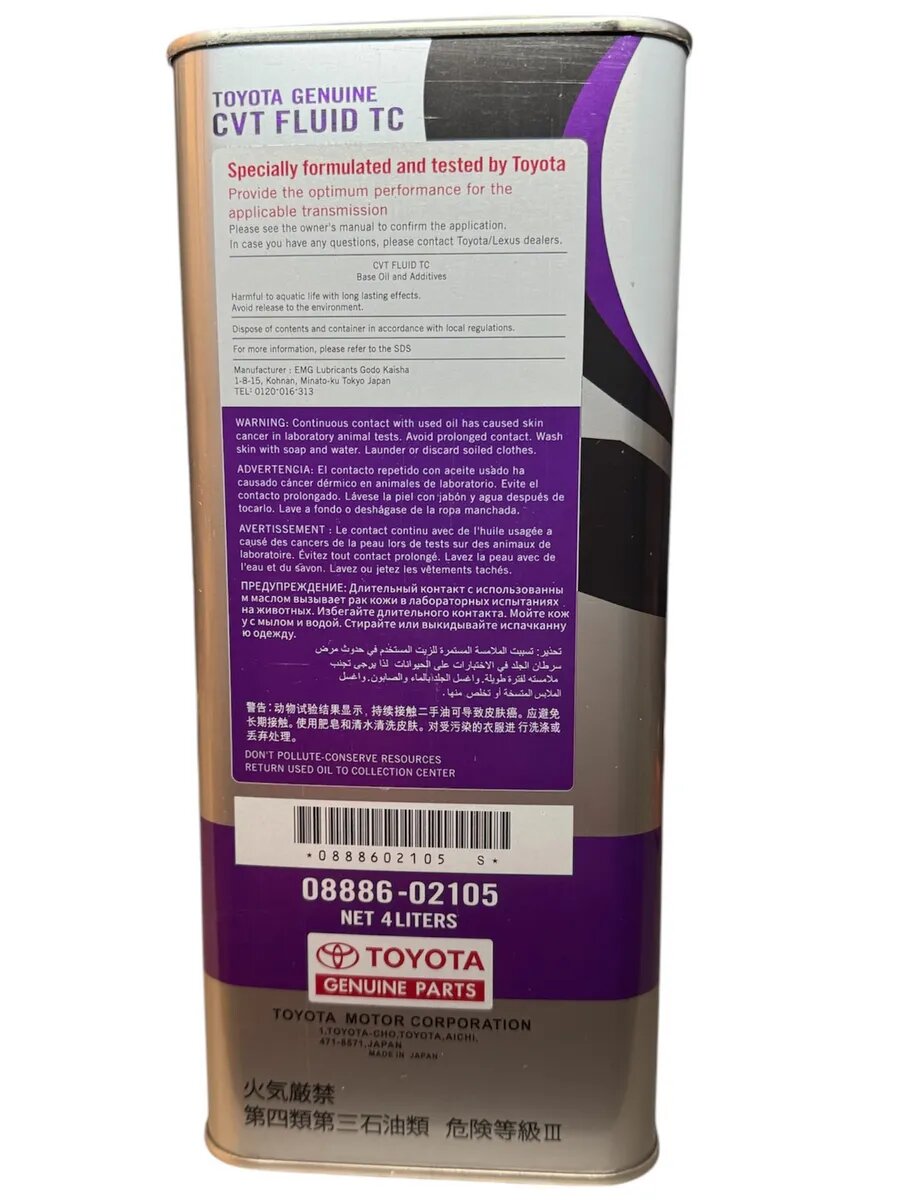 Масло трансмиссионное Toyota CVT FLUID TC, для вариаторных трансмиссий, 4 л интересное: