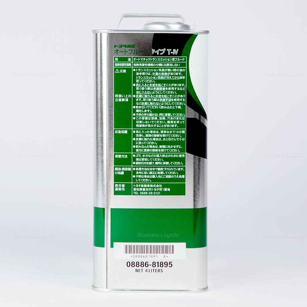 | Комплектация | Канистра трансмиссионного масла Toyota ATF Type T-IV (Таиланд) 4л + бирка - 1 штука в упаковке |