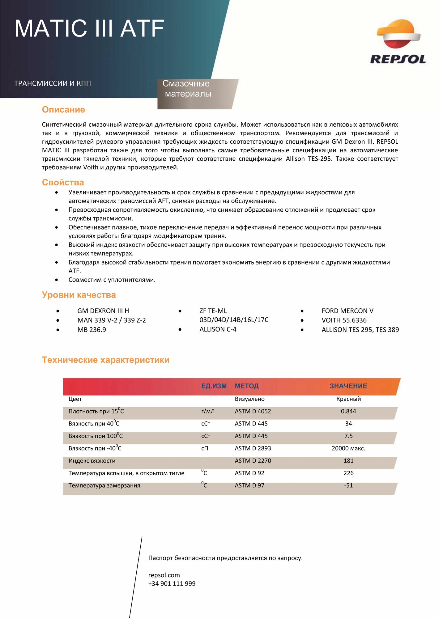 Масло синтетическое Repsol MATIC III ATF, 20 л интересное: