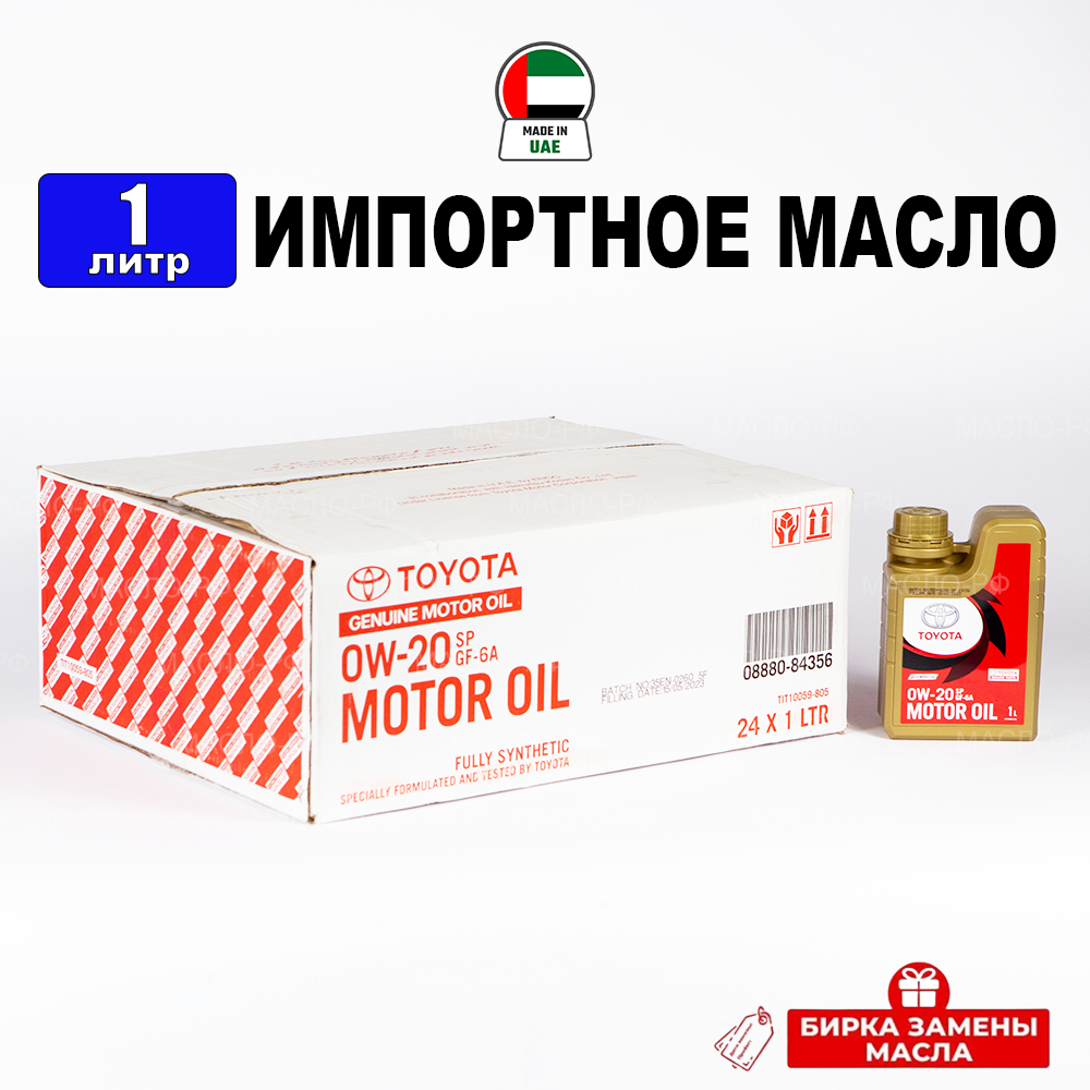Моторное масло Toyota SP 0W-20 / ILSAC GF-6A (Дубай), (1л) + бирка, масло для автомобиля с бенз. двигателем, 0w20 Тойота 08880-84356, РТЛ интересное: