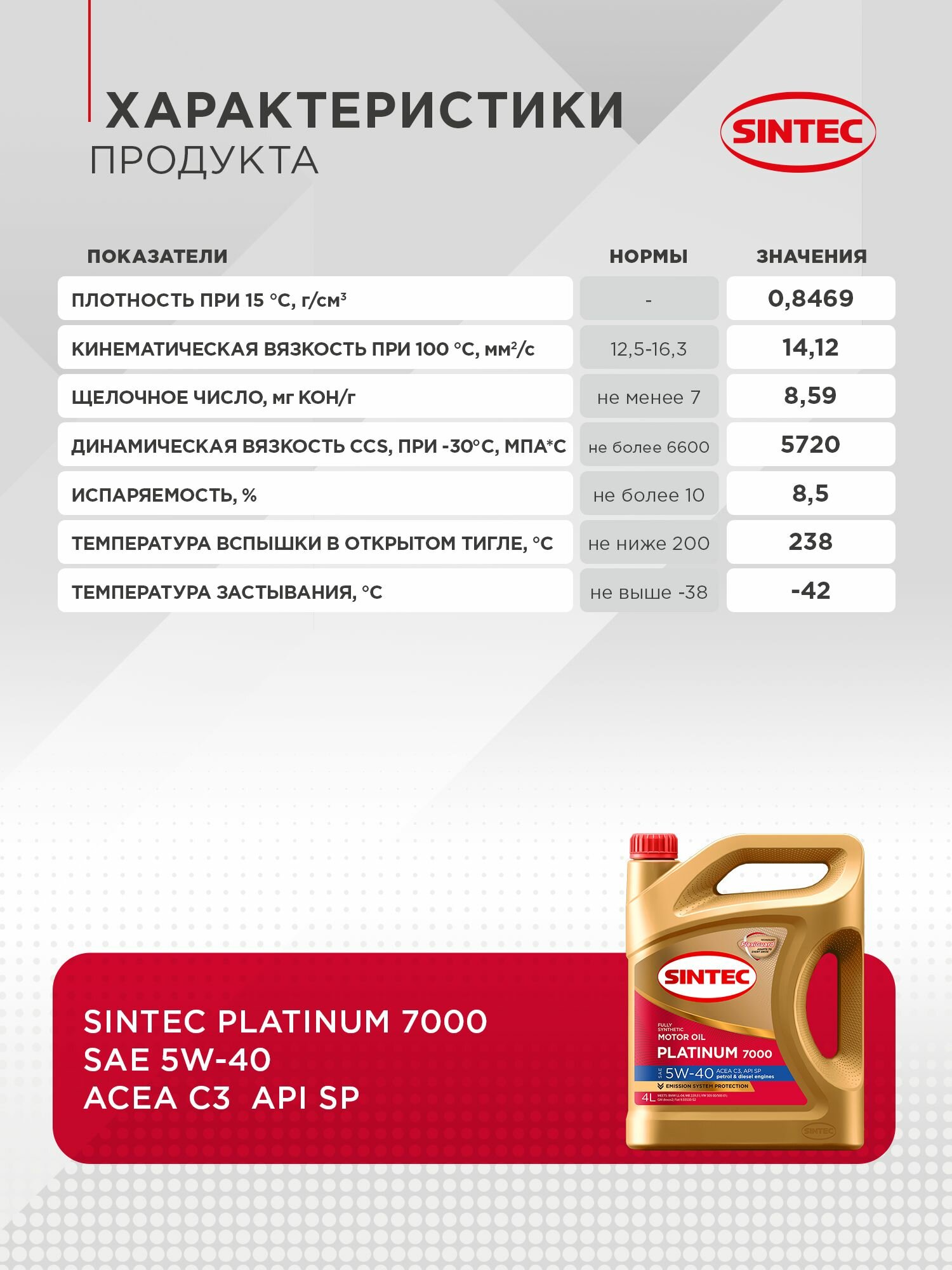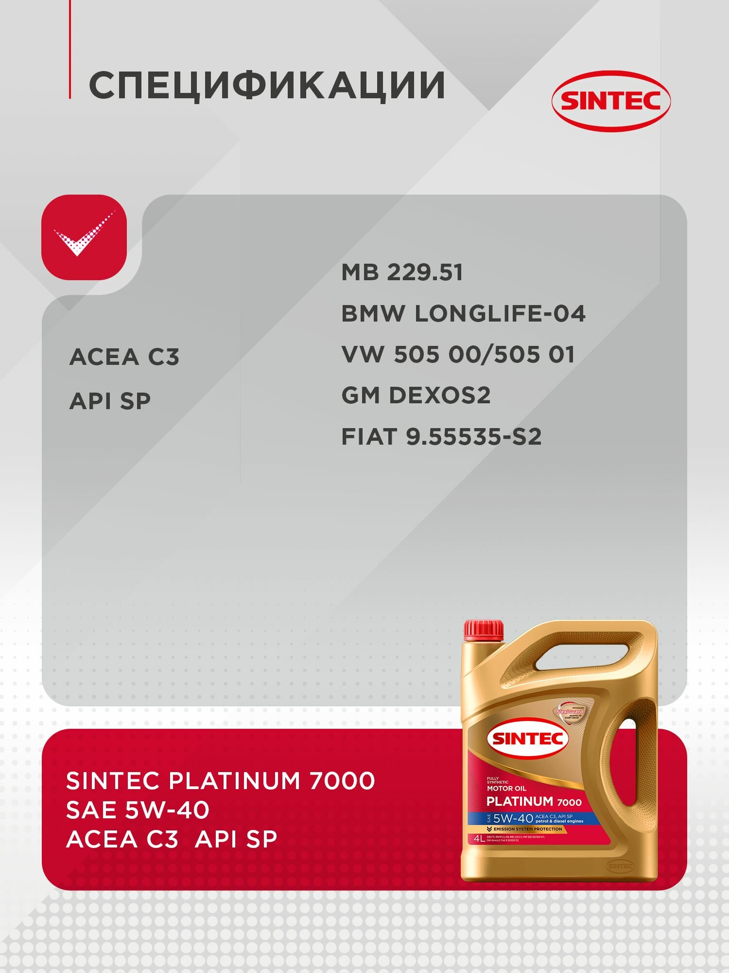 Моторное масло SINTEC PLATINUM 7000 SAE 5W-40, API SP, ACEA C3 Синтетическое 4 л интересное: