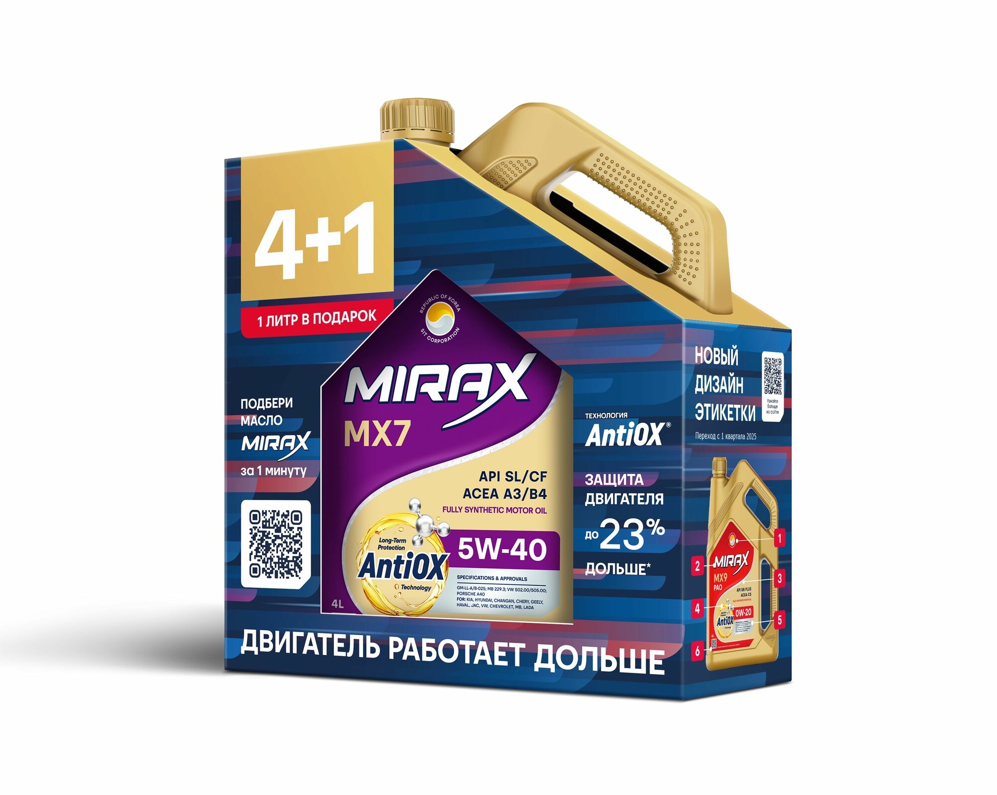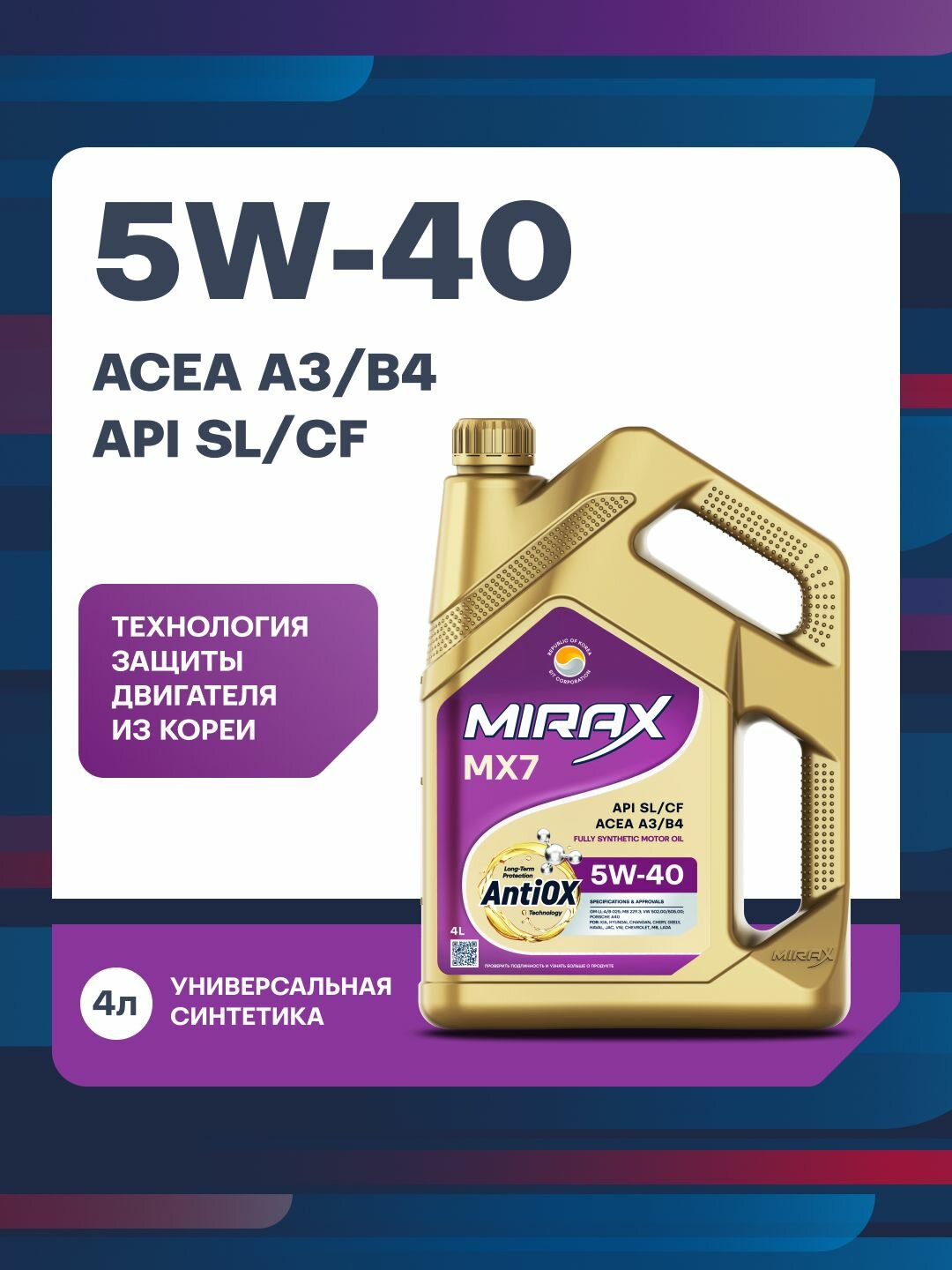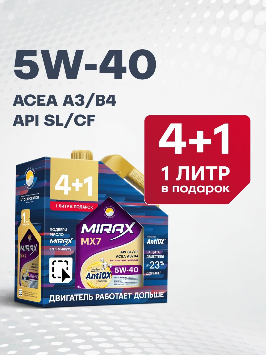 Купить Акция 4+1 Моторное масло MIRAX MX7 SAE 5W-40, API SL/CF, ACEA A3/B4 Синтетическое 5 л