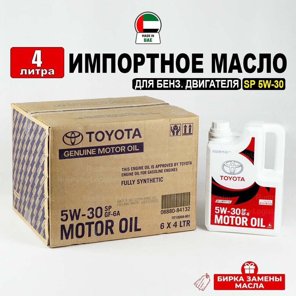 Моторное масло (универсальное) Toyota Oil SP 5W-30 / ILSAC GF-6A (Дубай), (4л) + бирка, масло синтетика 5w30 для бенз. двигателей, Тойота 08880-84132, РТЛ интересное: