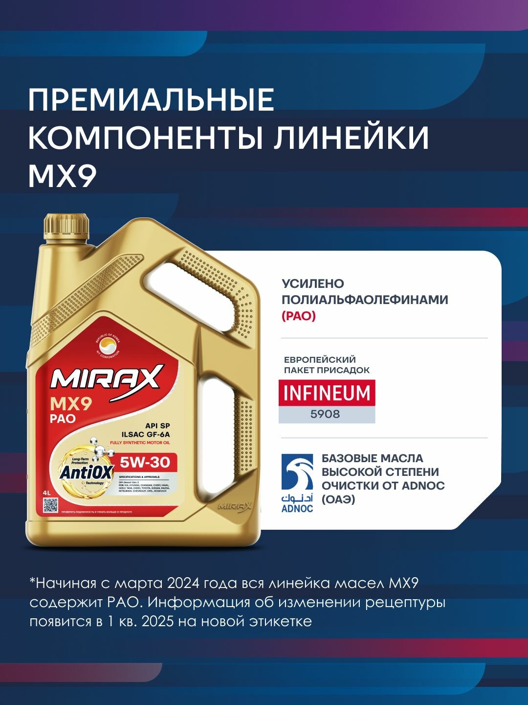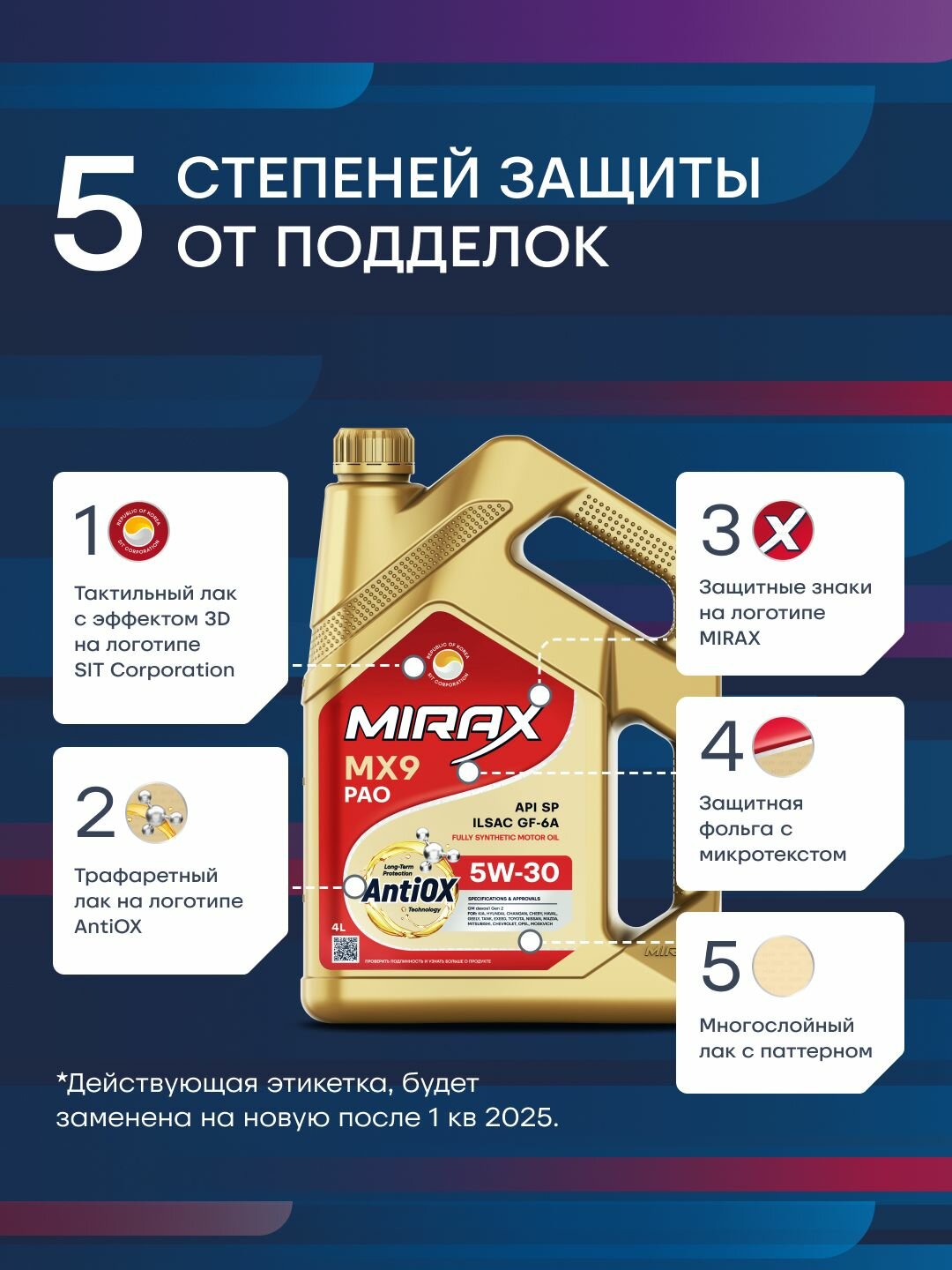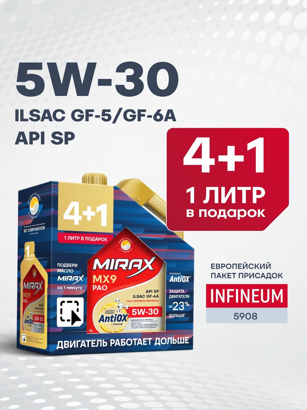 Акция 4+1 Моторное масло MIRAX MX9 SAE 5W-30, API SP, ILSAC GF-5/GF-6A Синтетическое 5 л интересное: