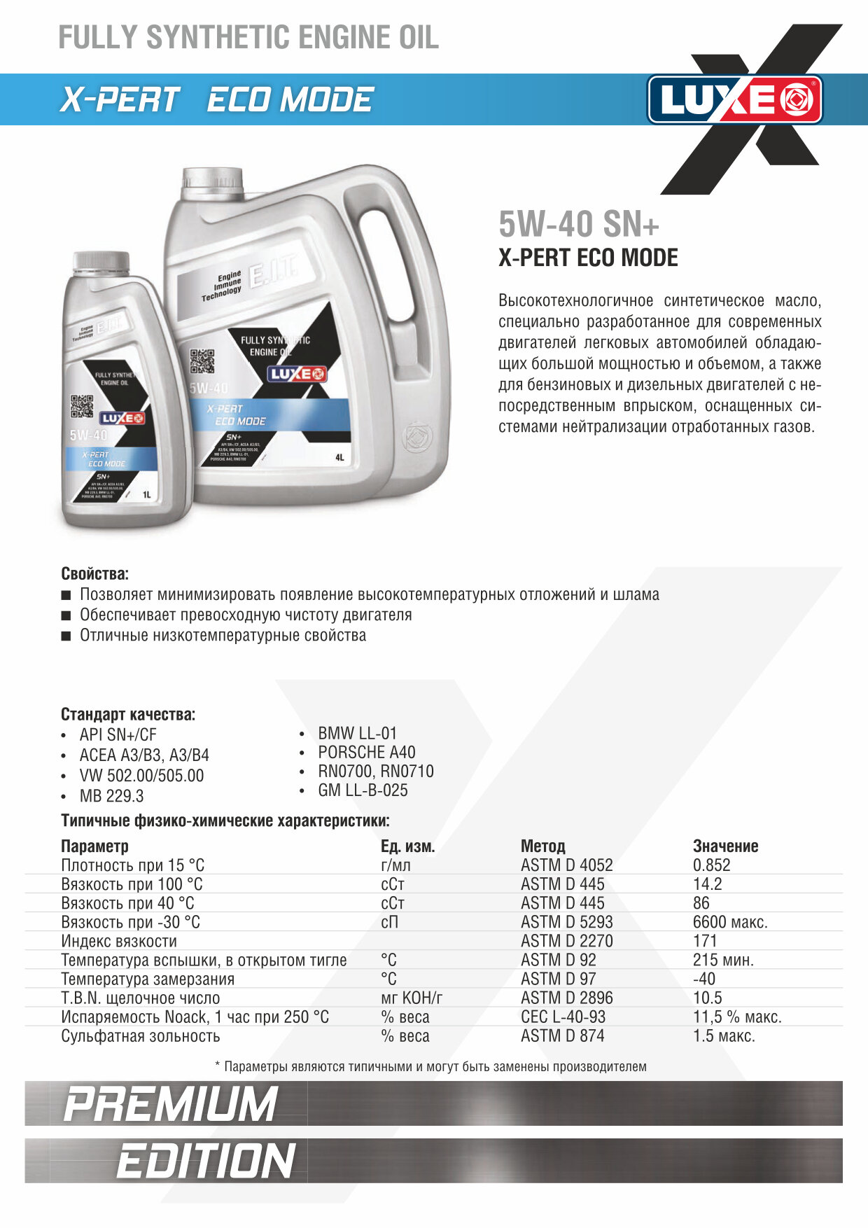 Масло моторное синтетическое LUXE B2C X-PERT ECO MODE 5W40, акция 4+1 л. интересное: