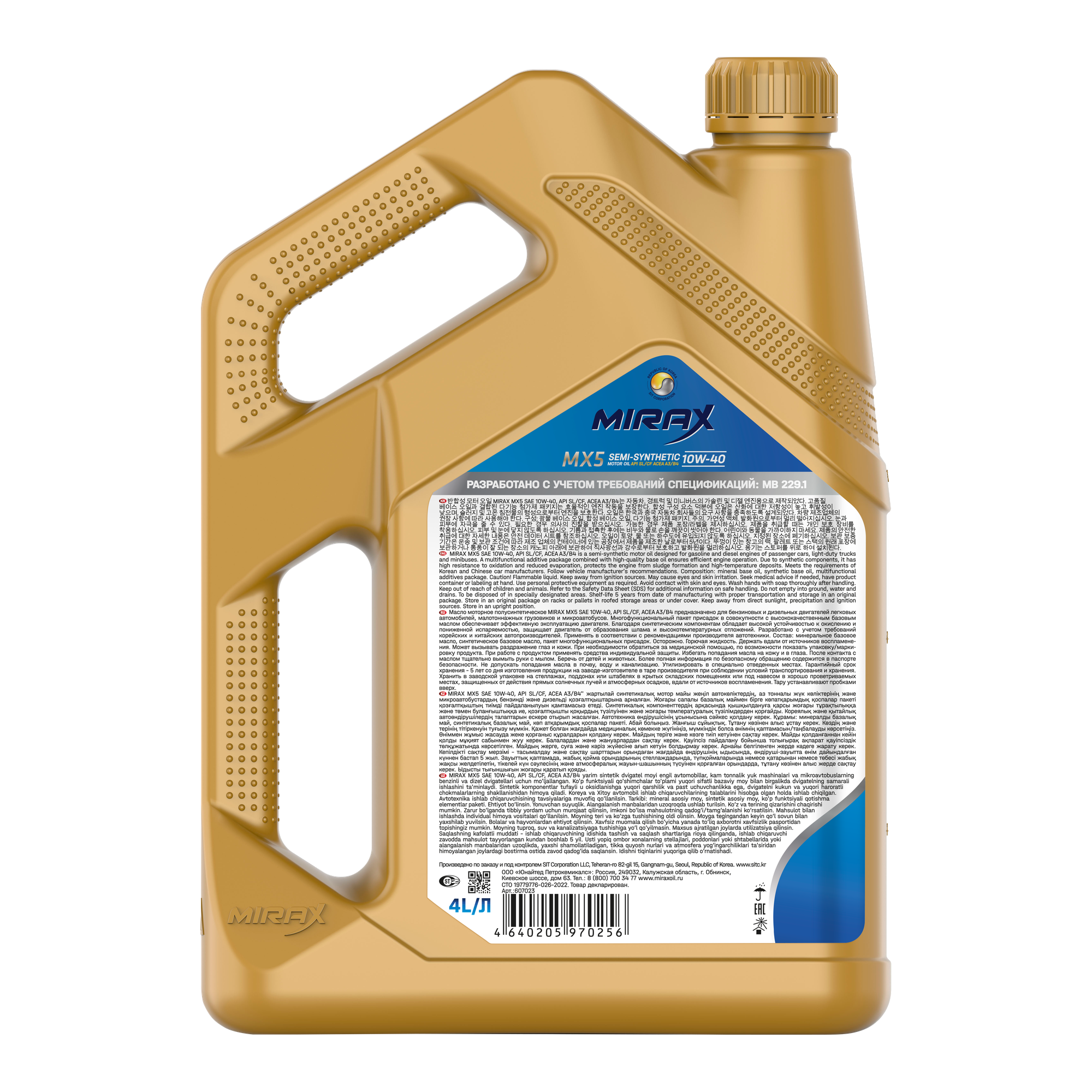 Купить Моторное масло MIRAX MX5 SAE 10W-40 API SL/CF, ACEA A3/B4, 4X4L
