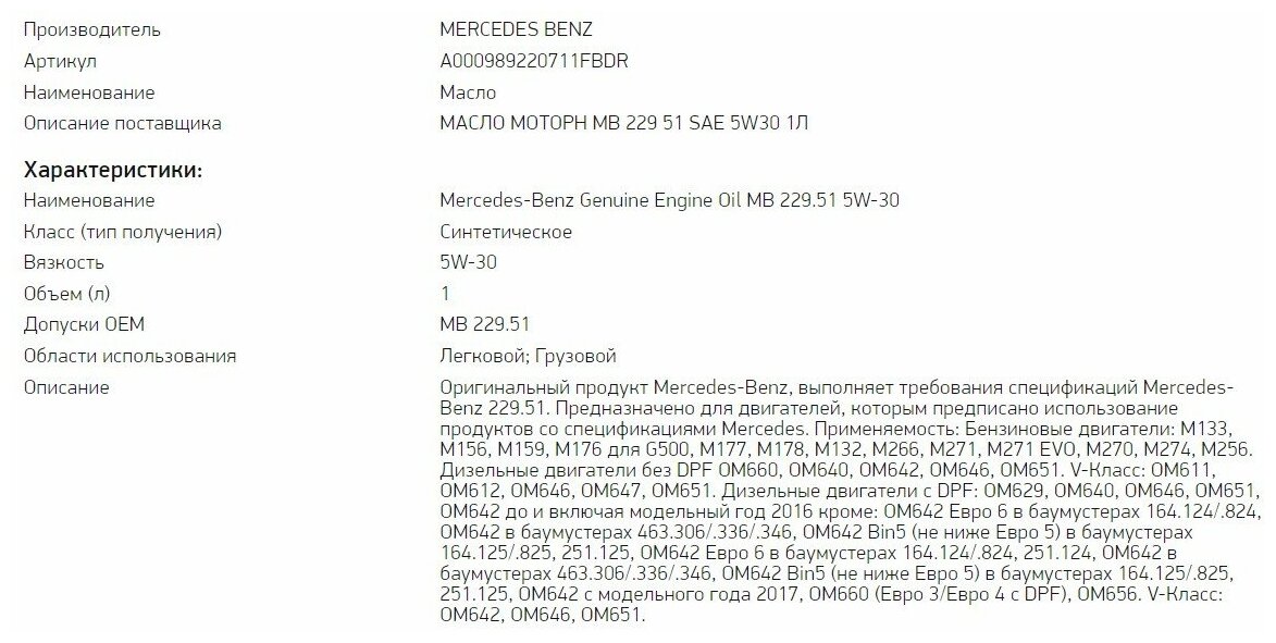 Синтетическое моторное масло Mercedes-Benz MB 229.51 5W-30, 1 л, 1 шт. интересное: