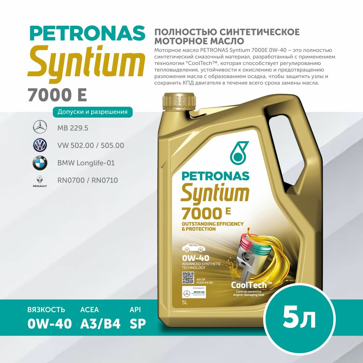 Масло моторное PETRONAS SYNTIUM 7000 E 0W-40 5L интересное: