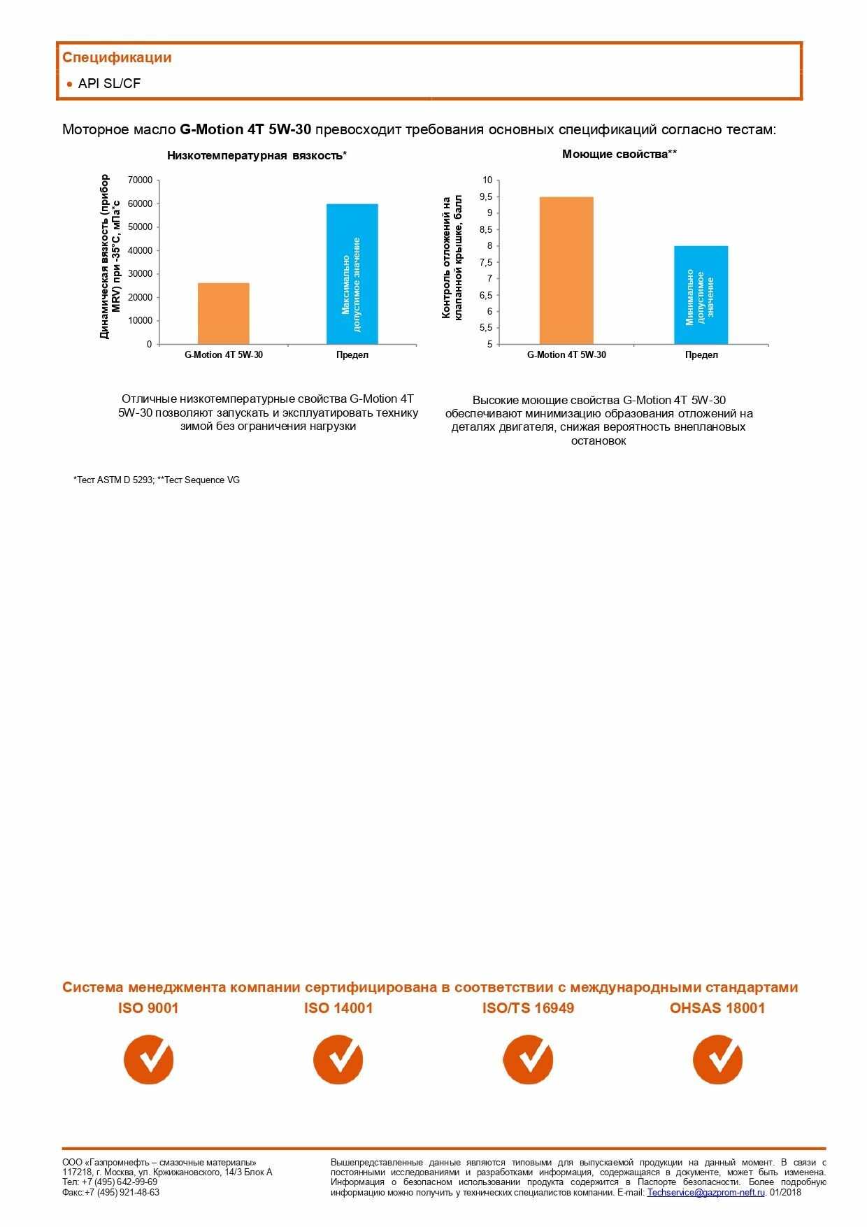 Масло моторное G-Motion 4T 5W-30, канистра 1л интересное:
