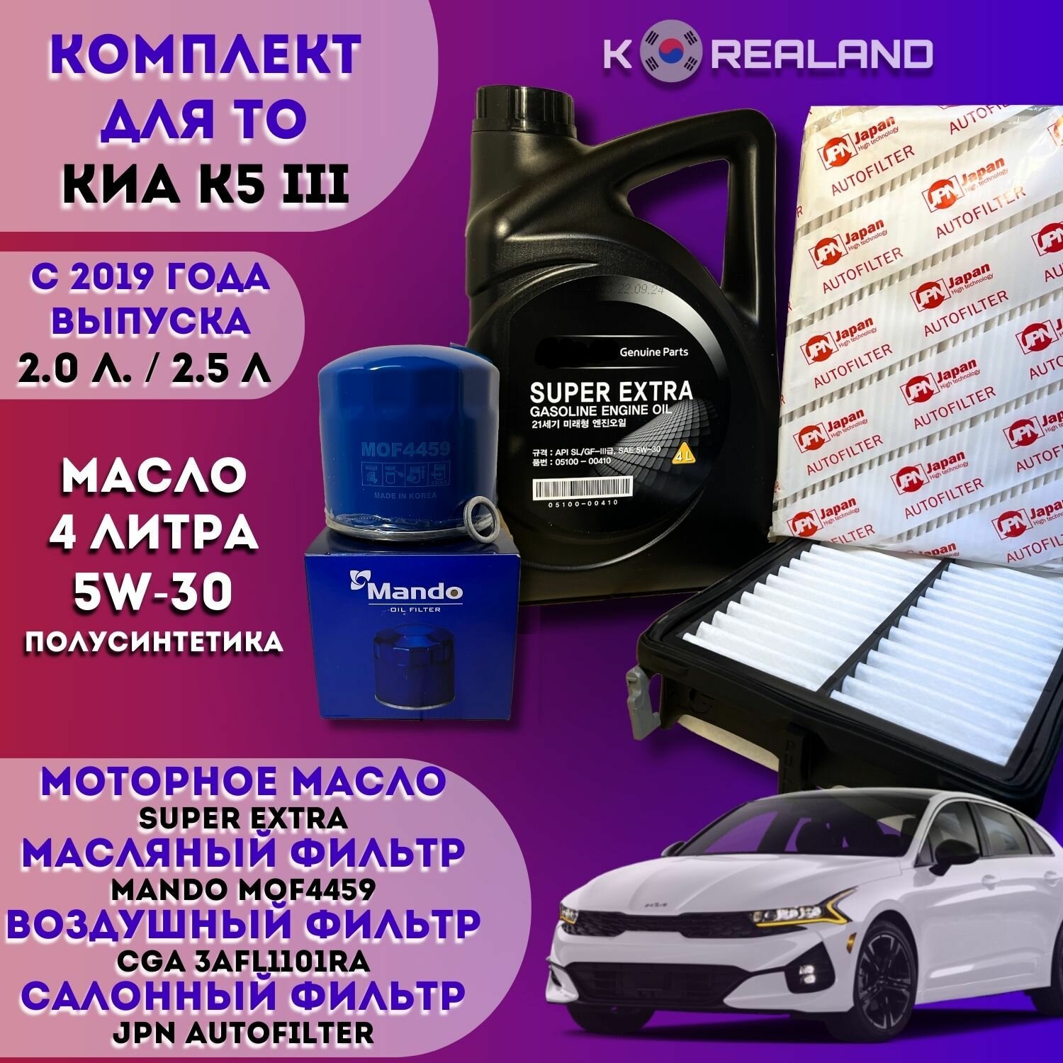 Моторное масло Super Extra + фильтры для автомобиля Киа К5 c 2019 года выпуска с двигателем объёмом 2 и 2,5 литра интересное: