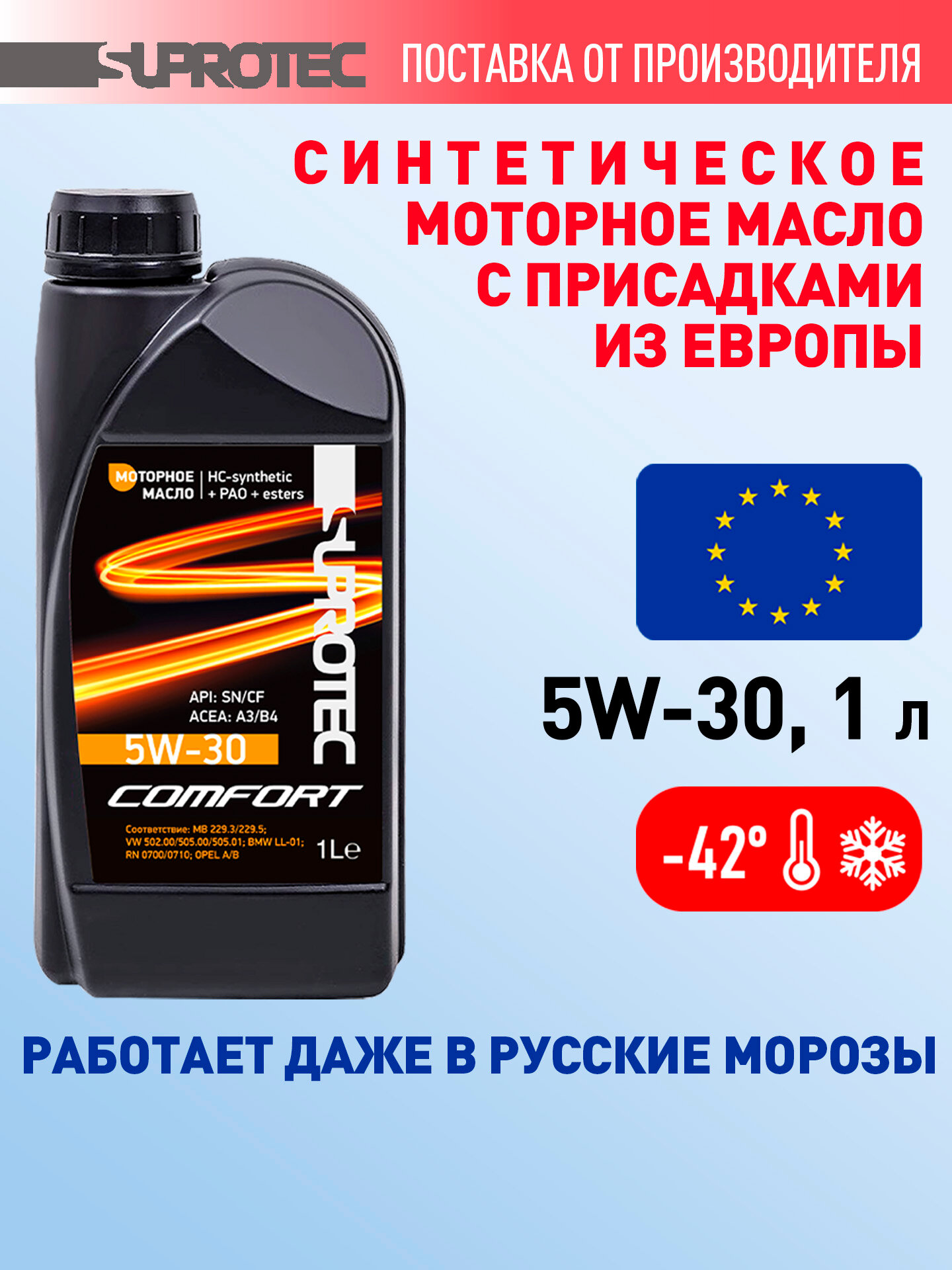 Масло моторное 5w30 синтетика Супротек Comfort, масло для дизельных и бензиновых двигателей, 1л интересное: