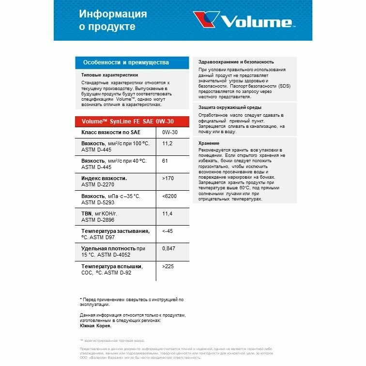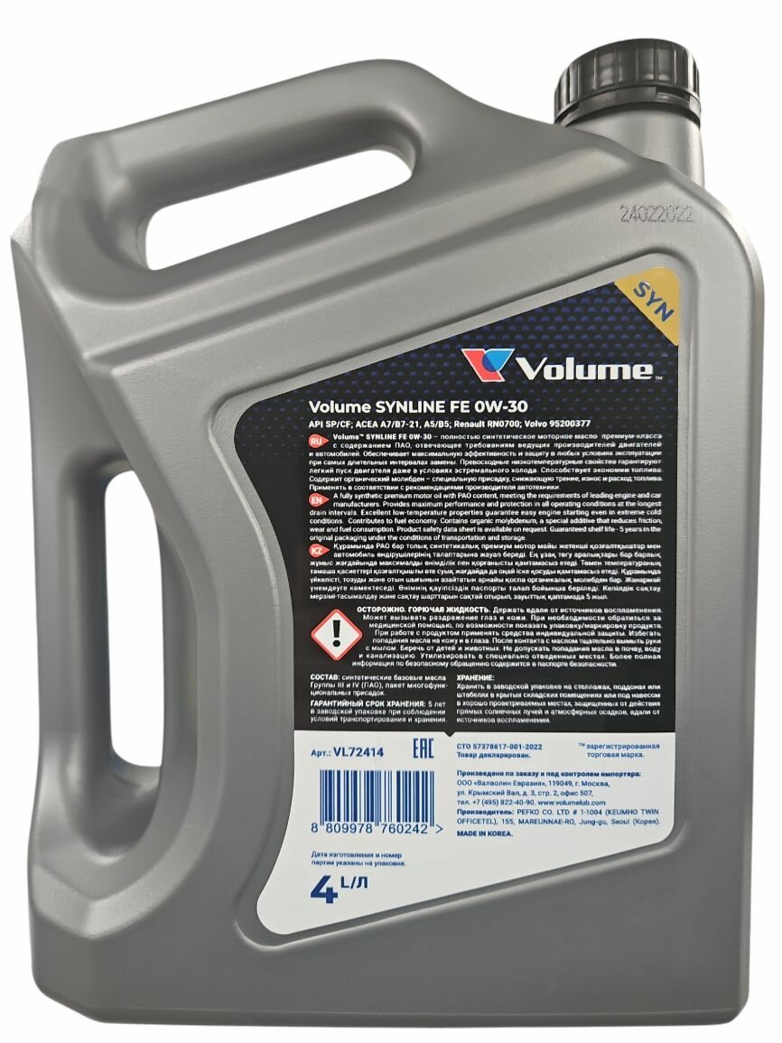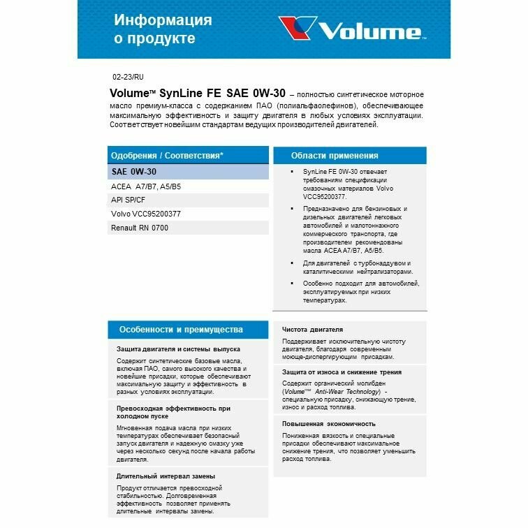 Масло моторное Volume SYNLINE FE 0W-30, 4л интересное: