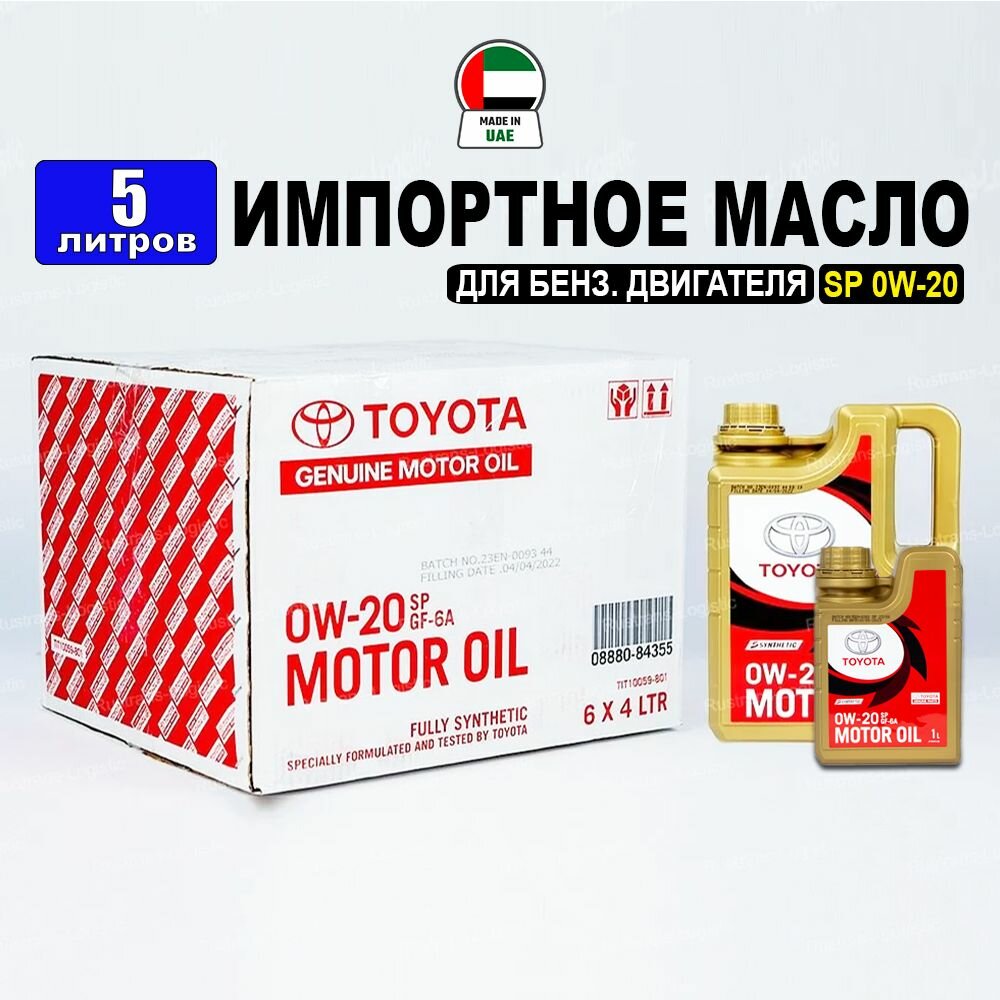 Моторное масло Toyota SP 0W-20 (Дубай) 5л (набор: 4л + 1л) масло для автомобиля 08880-84355 интересное: