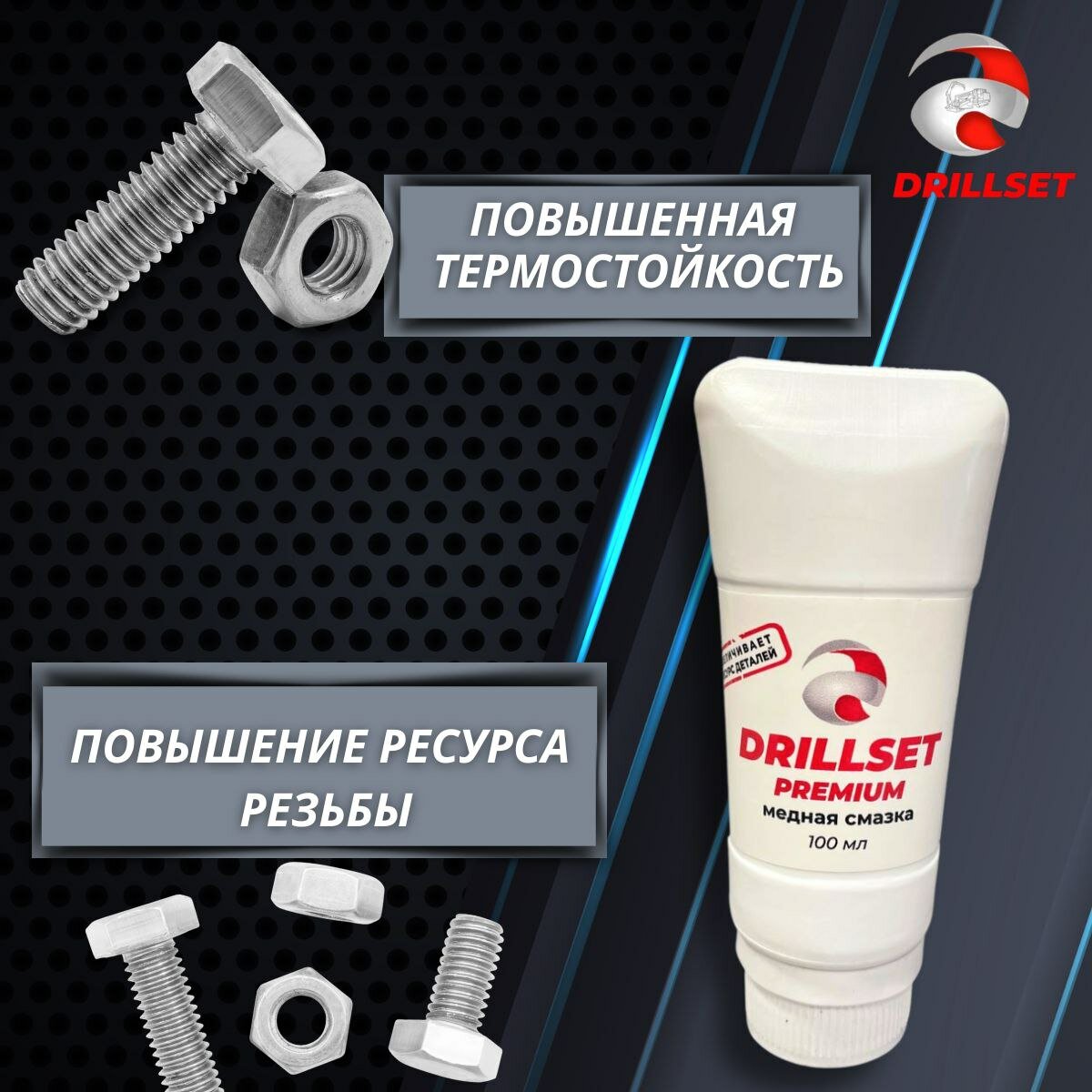 Медная смазка DRILLSET PREMIUM, универсальная, высокотемпературная 100 мл, в тубе интересное: