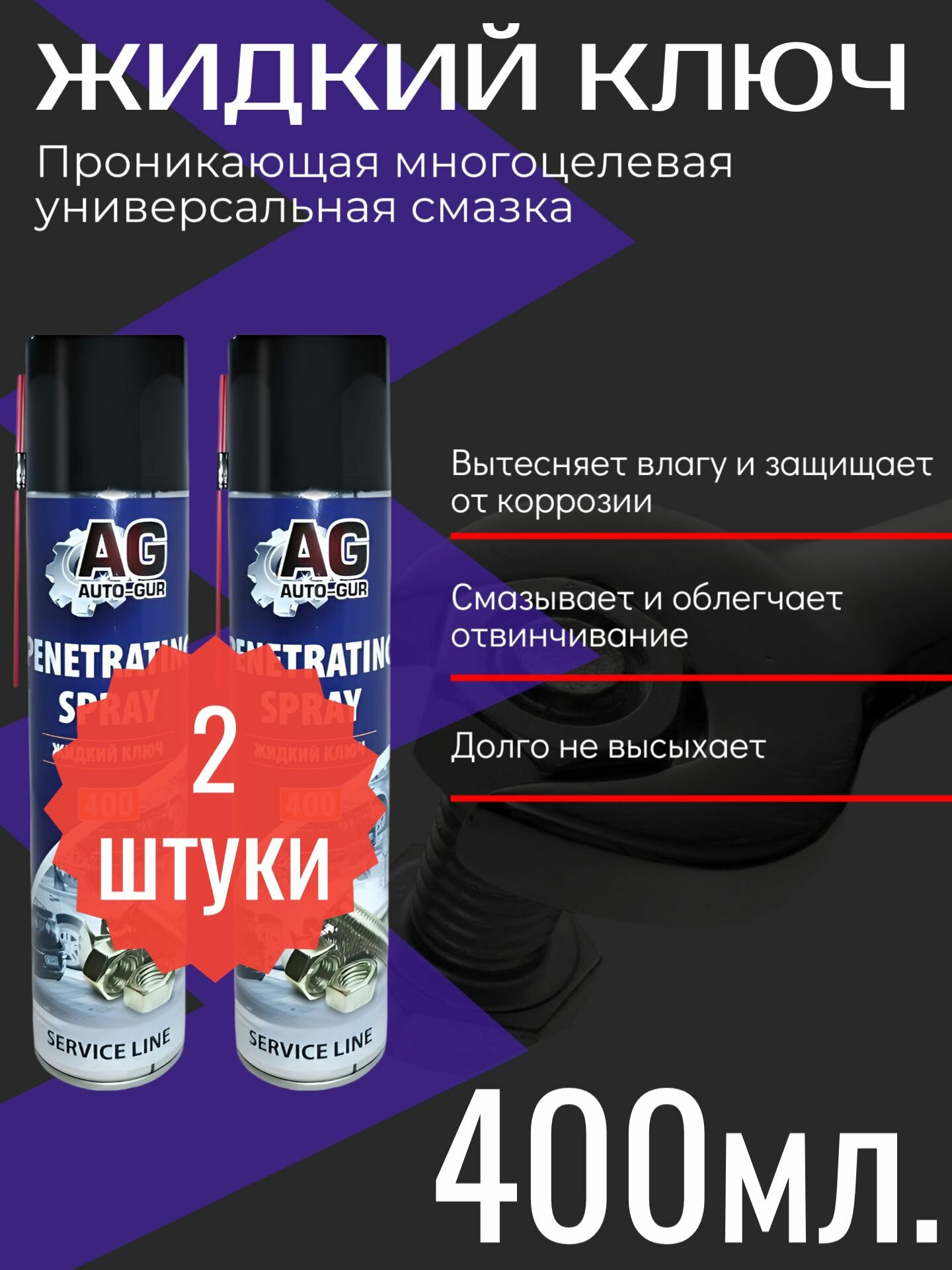 Жидкий ключ 400 мл Проникающая многоцелевая универсальная смазка (аэрозоль) WD40 2 штуки интересное: