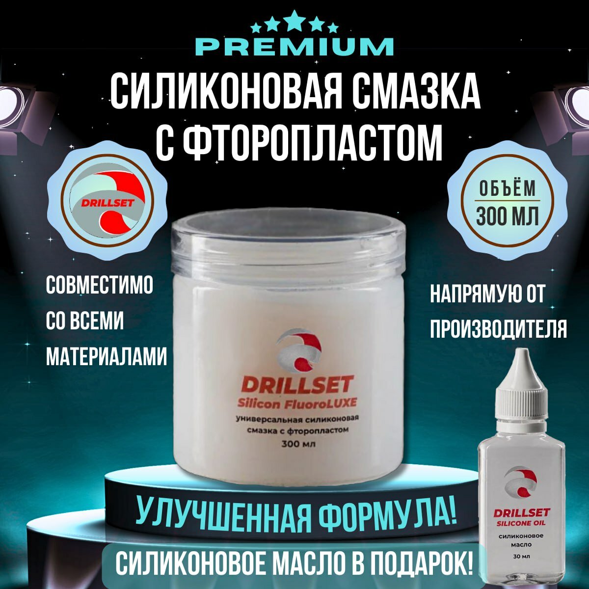Набор силиконовая смазка DRILLSET SILICONE FluoroLUXE с фторопластом, термостойкая, 100мл+30мл