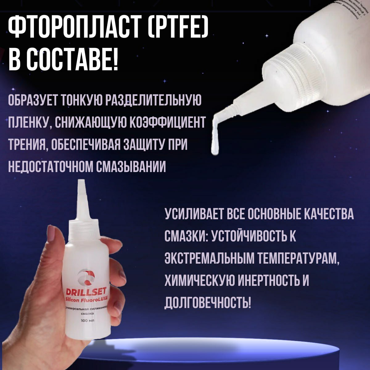 Набор силиконовая смазка DRILLSET SILICONE FluoroLUXE с фторопластом, термостойкая, 100мл+30мл