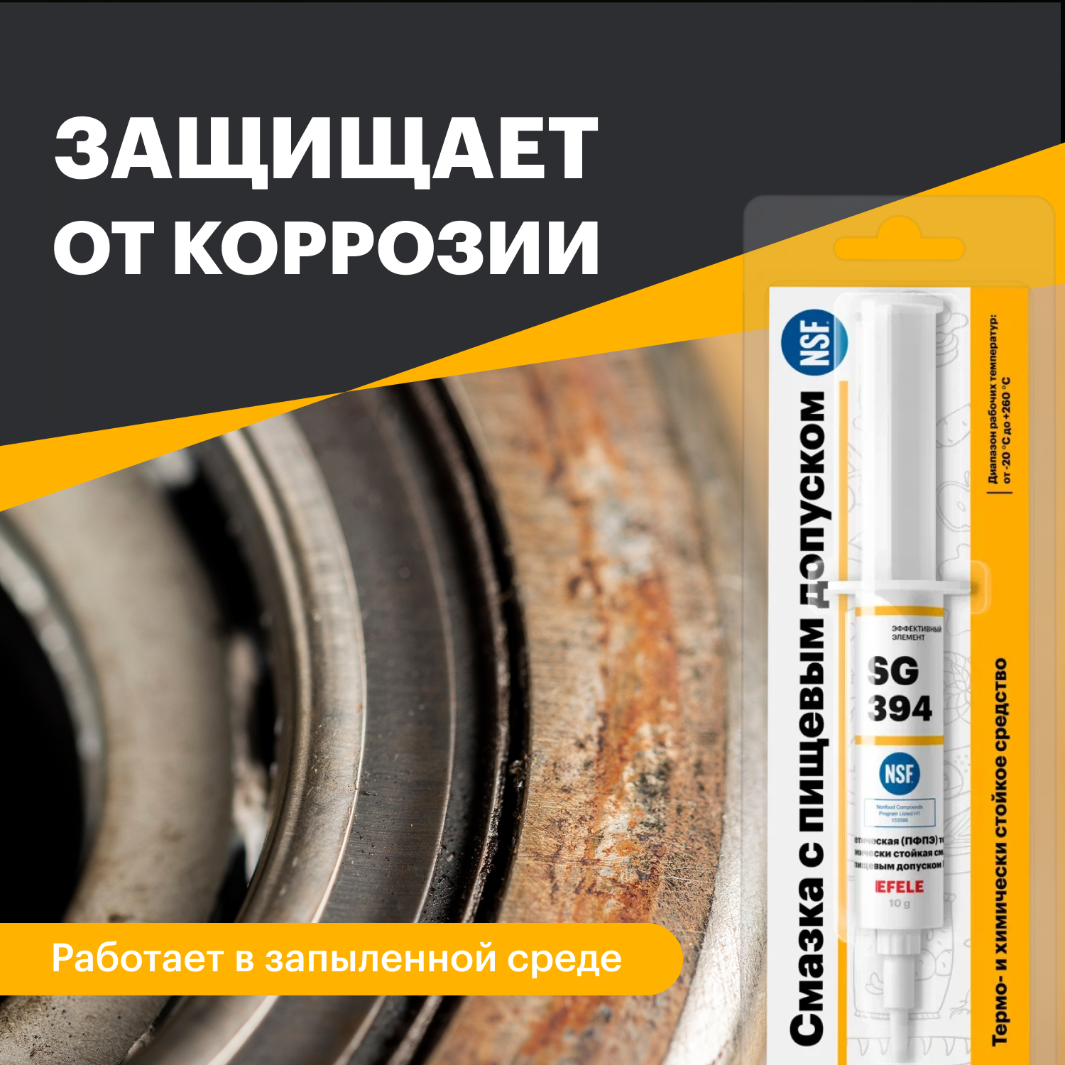 Термо- и химически стойкая пластичная смазка с пищевым допуском NSF H1 EFELE SG-394 в дозаторе 10 г интересное: